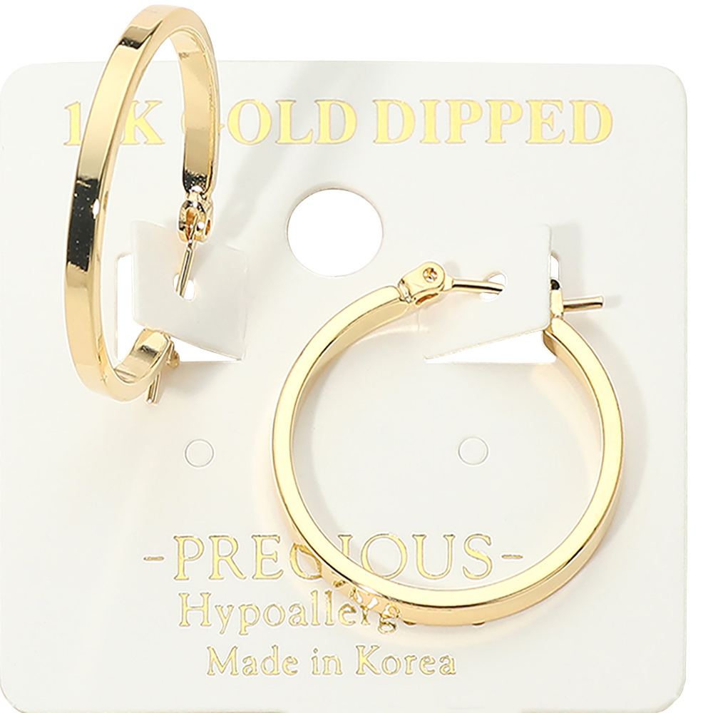 14K Gold Dipped Hypoallergenic Slim Flat Pin Catch Hoop Earrings 14K Gold Dipped Hypoallergenic Slim Flat Pin Catch Hoop Earrings