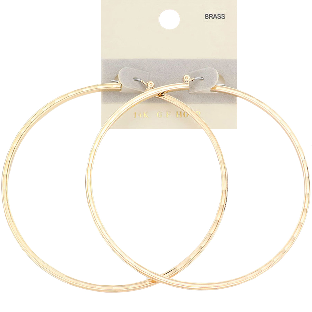 Details • Size : 3.25" X 3.25" • Pin Catch • These sleek lightweight hoop earrings offer a clean, minimalist look perfect for everyday style or an elevated evening finish. Their smooth, polished design adds subtle shine and effortless sophistication, making them a versatile accessory that complements any wardrobe with ease. • Gold Filled • Lead and Nickel Compliant