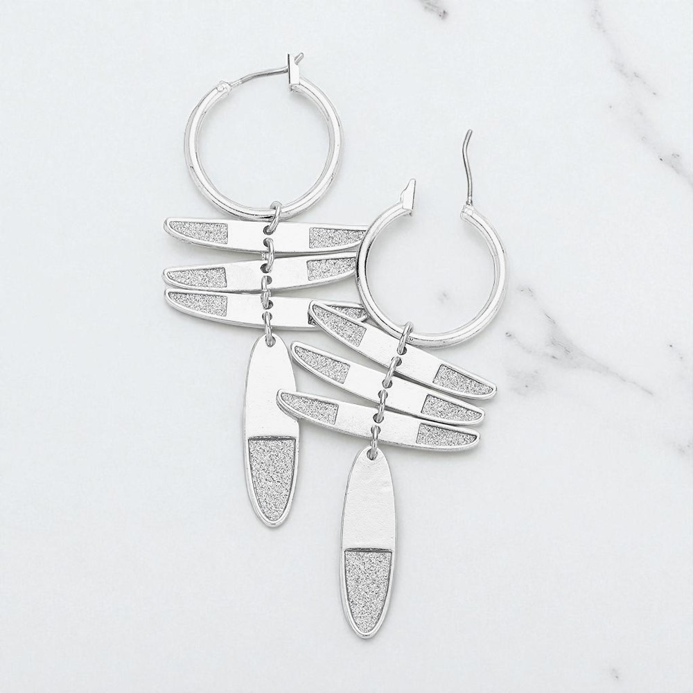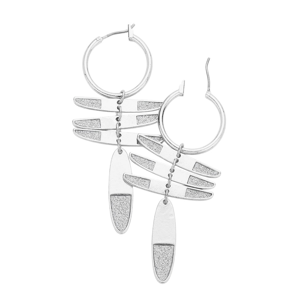 Hammered Metal Triple Open Oval Layered Dangle Earrings