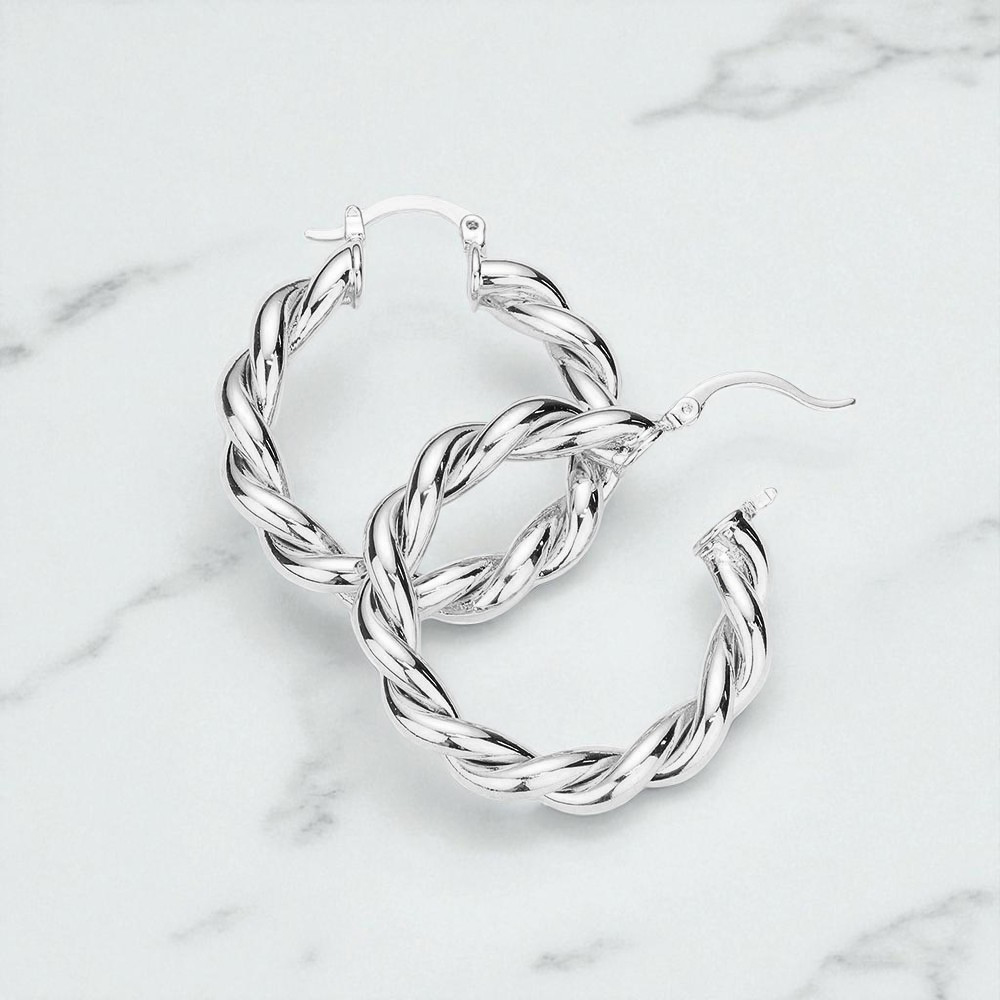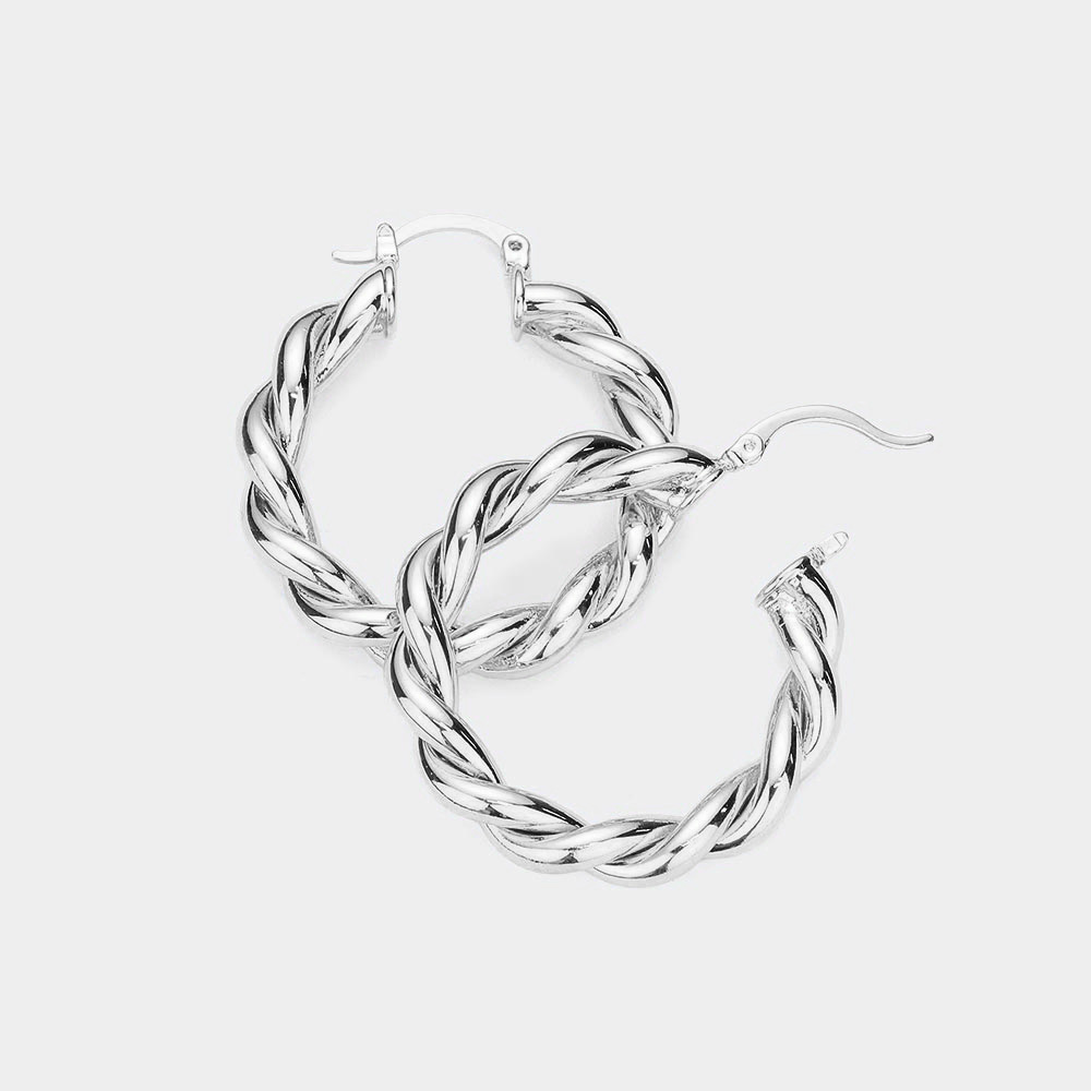 Twisted Stainless Steel Hoop Pin Catch Earrings