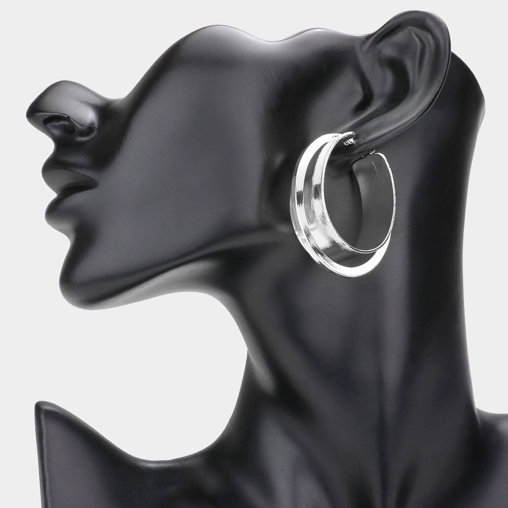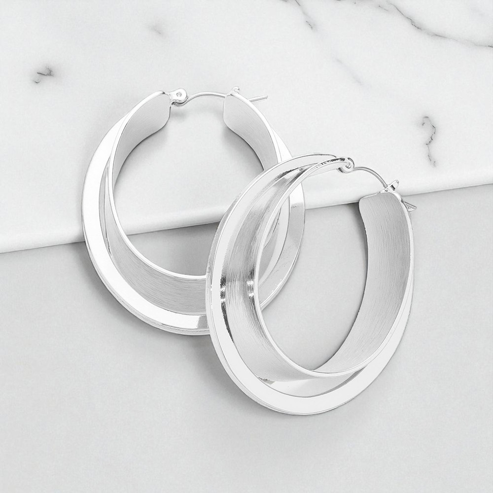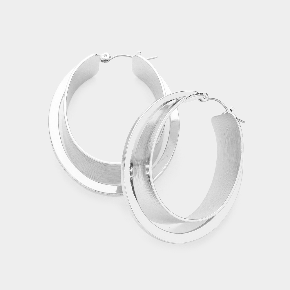 Double Layered Metal Oval Hoop Pin Catch Earrings