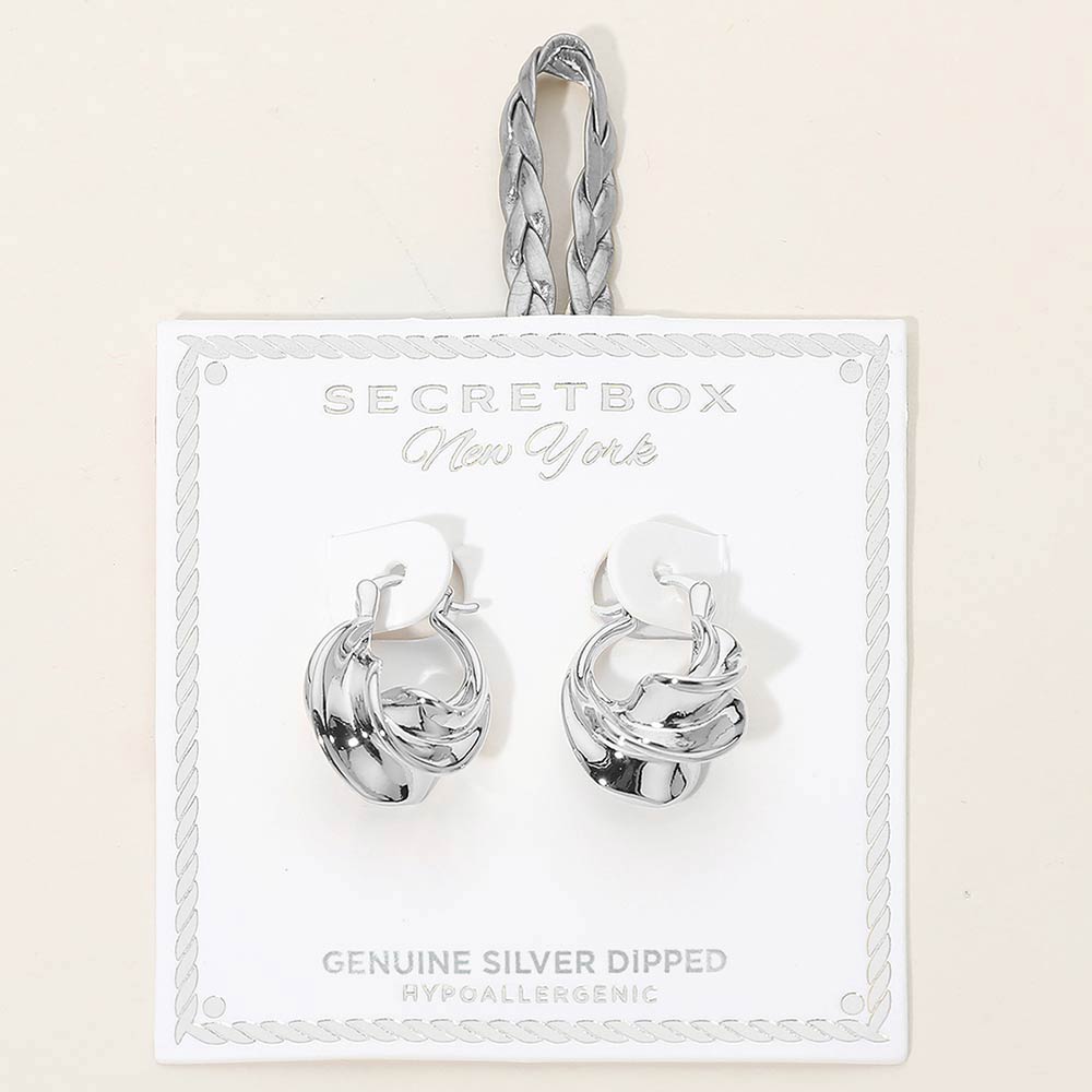 SECRET BOX_Genuine Silver Dipped Twist Pin Catch Hoop Earrings SECRET BOX_Genuine Silver Dipped Twist Pin Catch Hoop Earrings SECRET BOX_Genuine Silver Dipped Twist Pin Catch Hoop Earrings