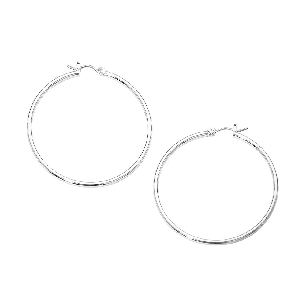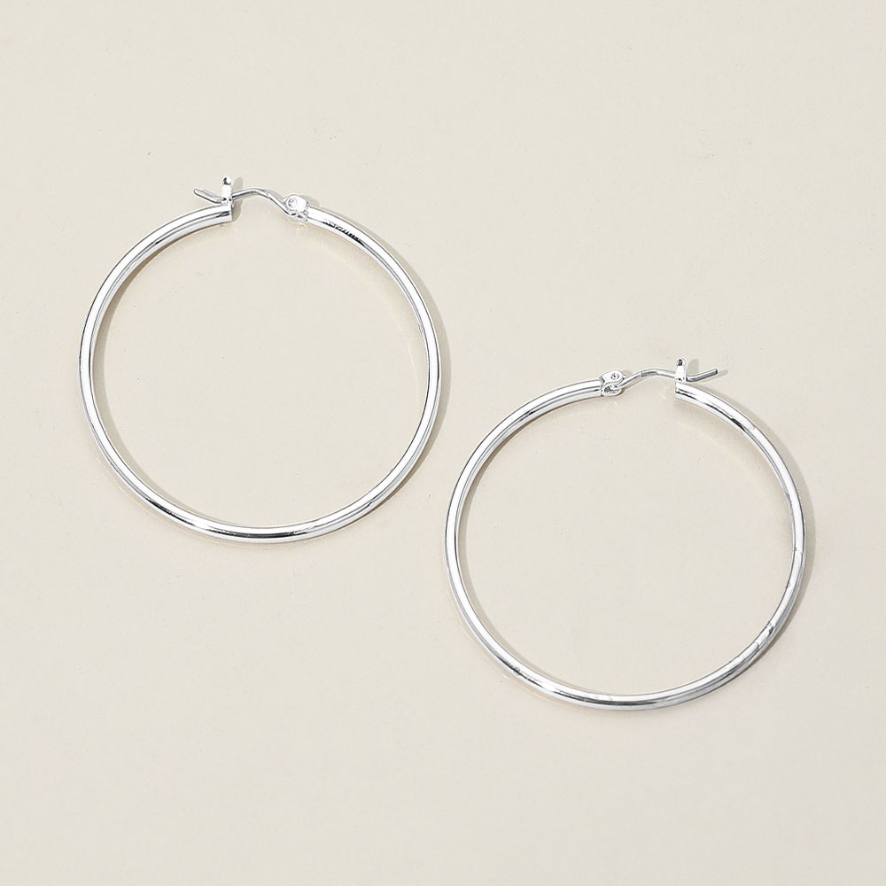 Details • Size : 2" X 2" • Pin Catch • Sleek thin hoop earrings designed with a smooth, lightweight finish for effortless everyday wear. Their clean, minimalist style pairs with any outfit, making them a timeless accessory for casual looks, work attire, or evening outfits. Perfect for adding simple, elegant flair to any jewelry collection. • Sterling Silver Dipped • Lead and Nickel Compliant