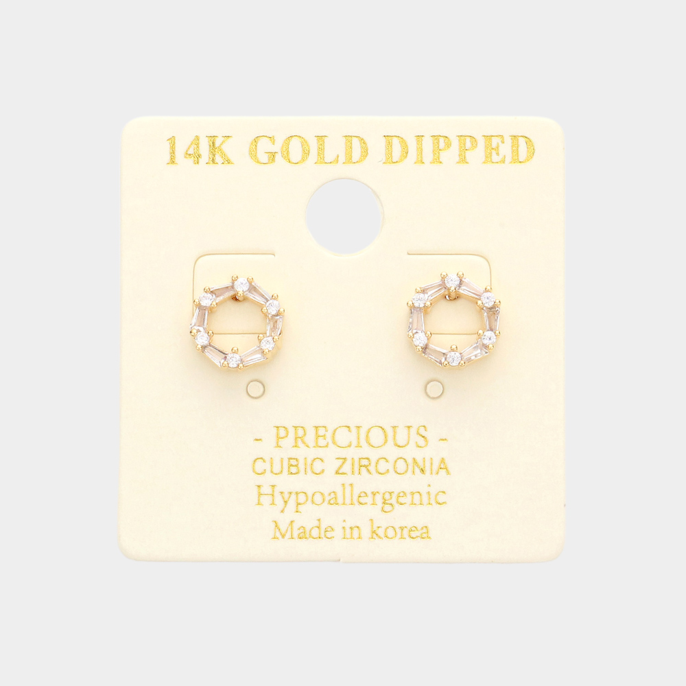 14K Gold Dipped CZ Embellished Open Circle Stud Earrings