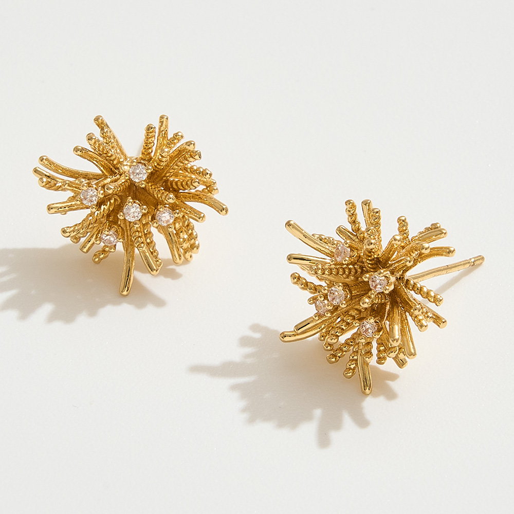 • Radiant starburst crystal stud earrings designed with intricate detailing and sparkling accents. Perfect for adding glamour to casual and formal looks, these earrings bring brilliance and bold elegance to your jewelry collection, making them a standout accessory.