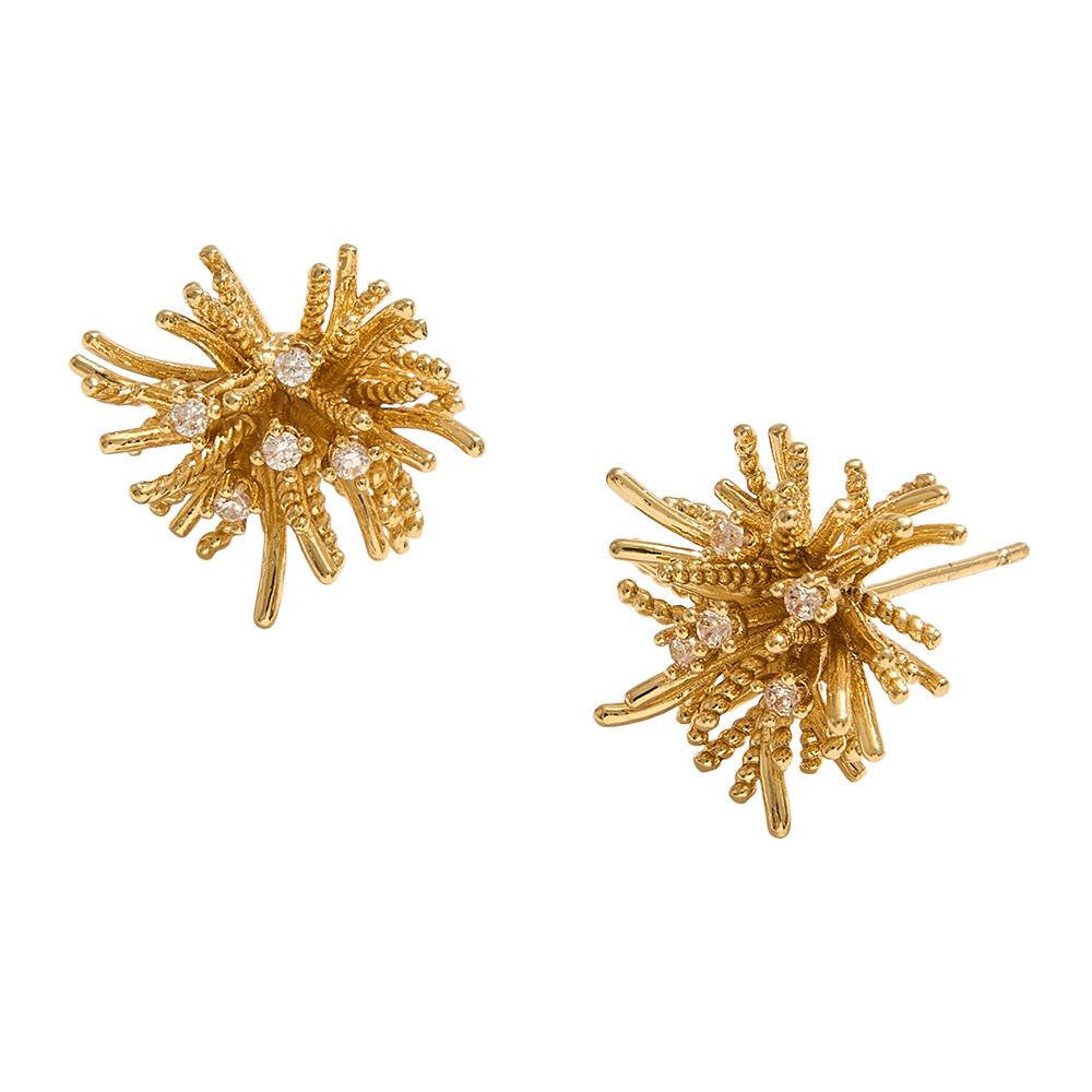 14K Gold Dipped CZ Stone Accent Starburst Stud Earrings