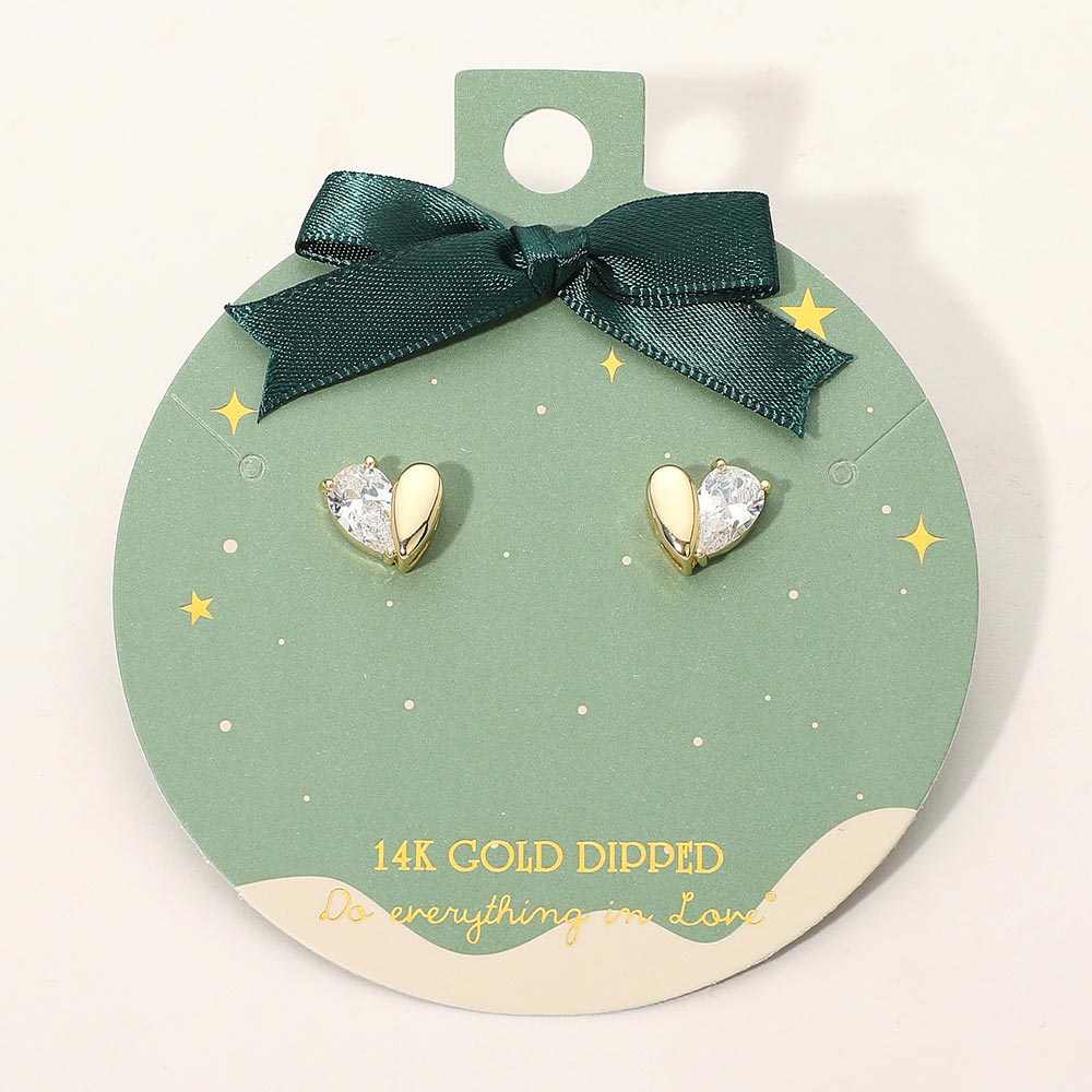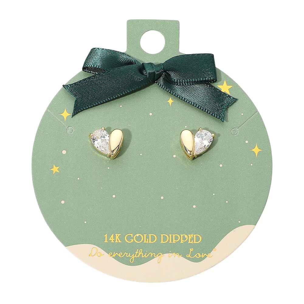 Details • Size : 0.5" X 0.4" • Post Back • Delicate half-heart crystal stud earrings featuring a petite pear-shaped stone paired with a smooth curved accent. Their sweet, minimalist silhouette makes them perfect for gifting, everyday wear, seasonal outfits, or adding a subtle romantic touch to any look. A timeless, polished accessory. • Gold Dipped • Hypoallergenic • Lead and Nickel Compliant • Made In Korea