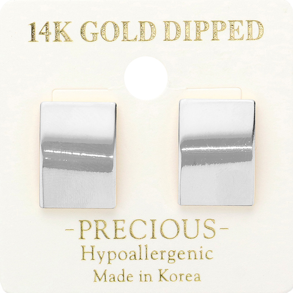 Details • Size : 0.5" X 0.75" • Post Back • Sleek rectangular stud earrings featuring a polished and contemporary design. Perfect for everyday wear or adding a subtle statement to special occasions, these versatile earrings bring elegance and sophistication to any jewelry collection. • Hypoallergenic • Made In Korea • Gold Dipped