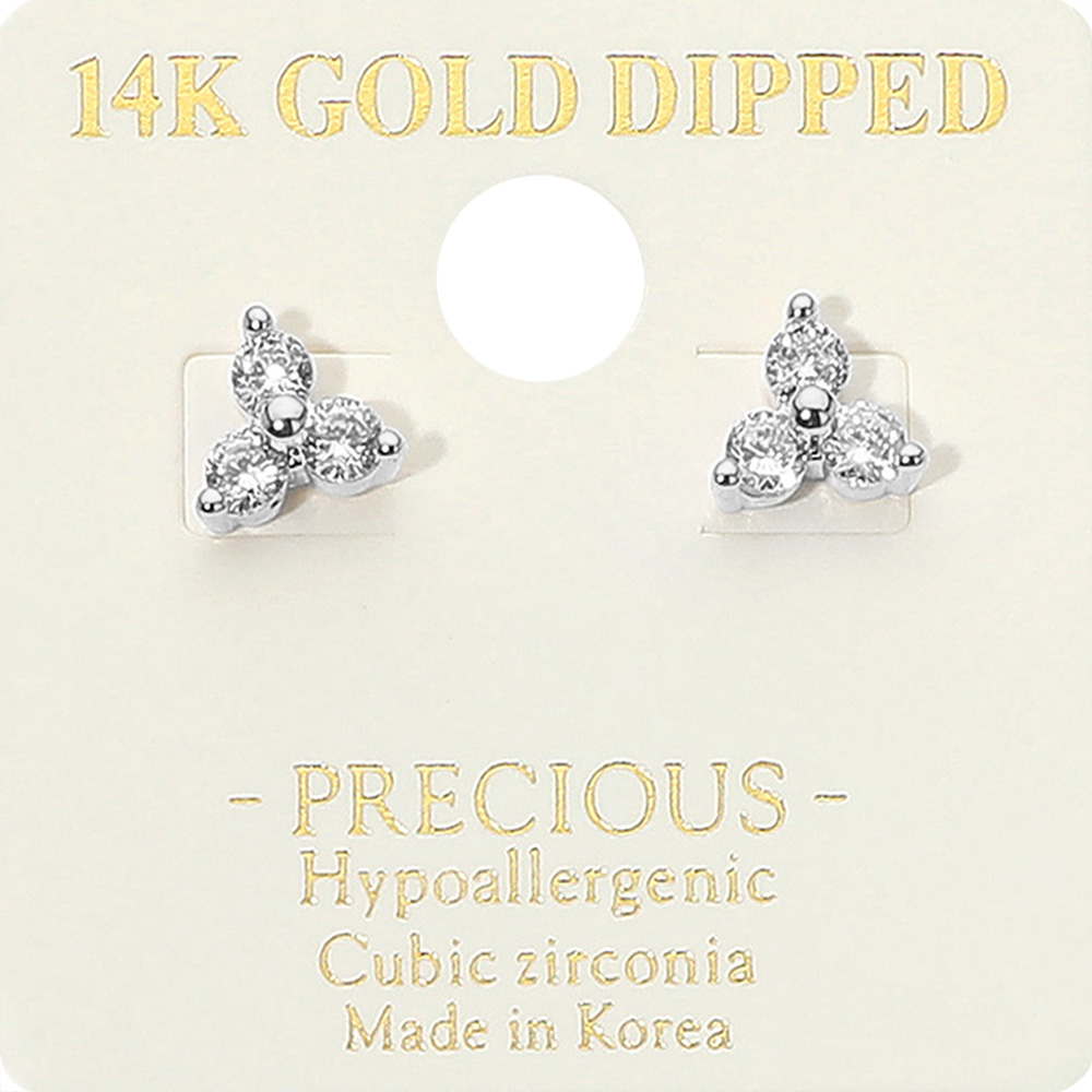14k Gold Dipped Hypoallergenic Trip CZ Stone Stud Earrings