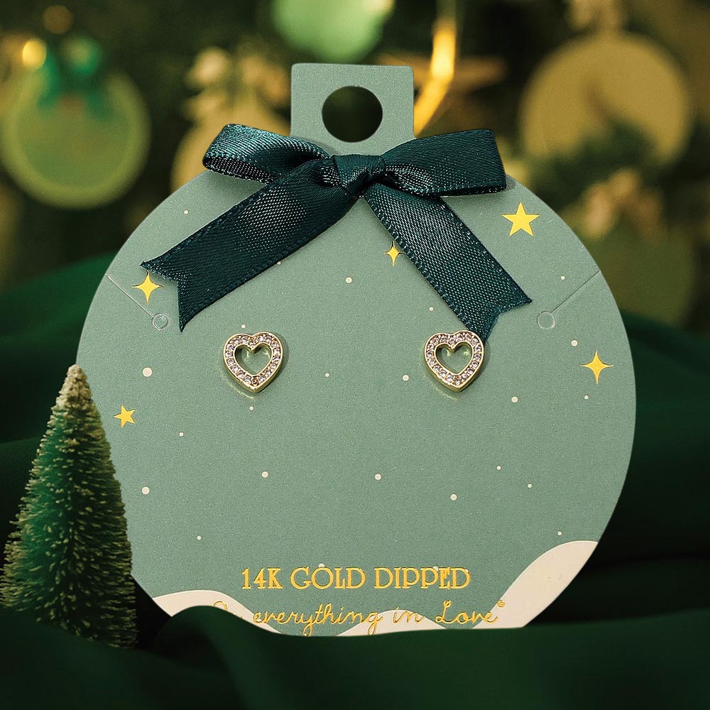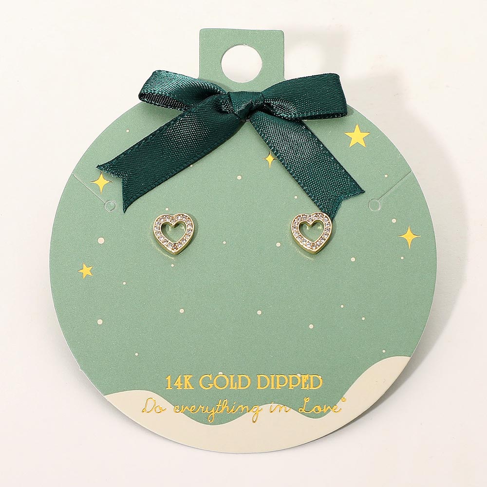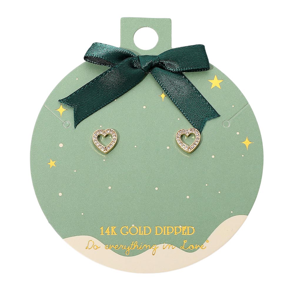 Details • Size : 0.3" X 0.3" • Post Back • Charming open heart stud earrings accented with shimmering stones for a refined, romantic touch. A timeless 14K gold dipped design perfect for daily wear, gifting, or adding a sweet sparkle to any jewelry collection. Lightweight, elegant, and beautifully detailed. • Gold Dipped • Hypoallergenic • Lead and Nickel Compliant • Made In Korea