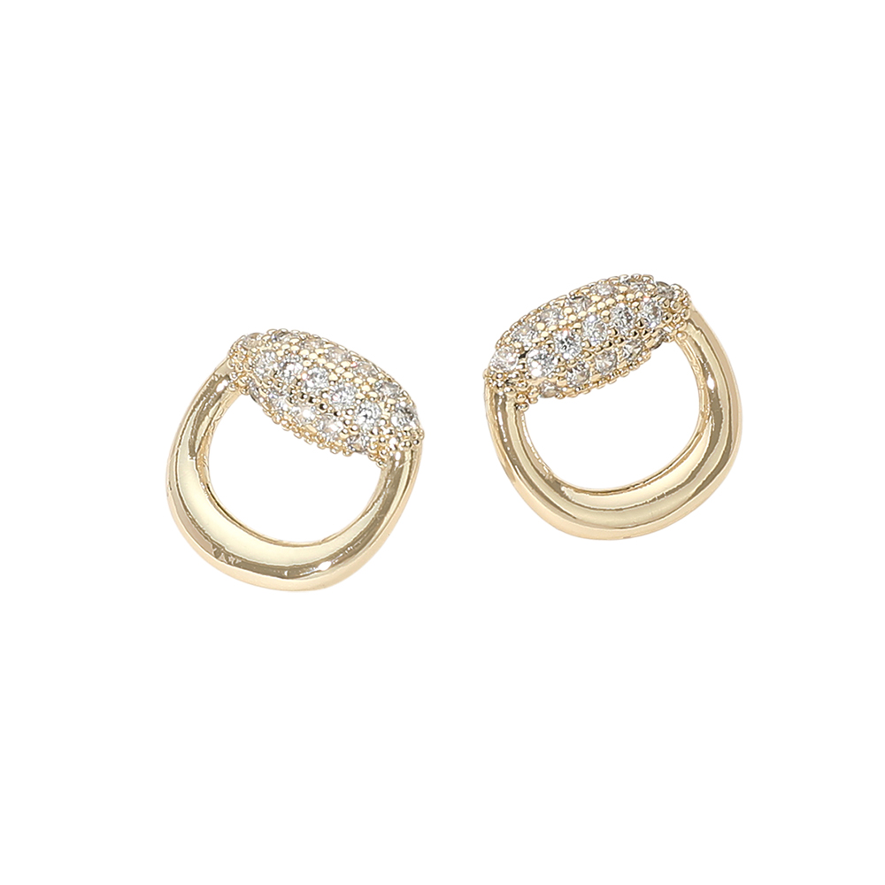 • Modern open circle stud earrings featuring a softly rounded silhouette topped with shimmering CZ pavĂ© detail. Designed to add subtle sparkle and dimension, this refined style transitions easily from everyday wear to evening looks, making it a versatile and giftable accessory choice for fashion-forward collections.