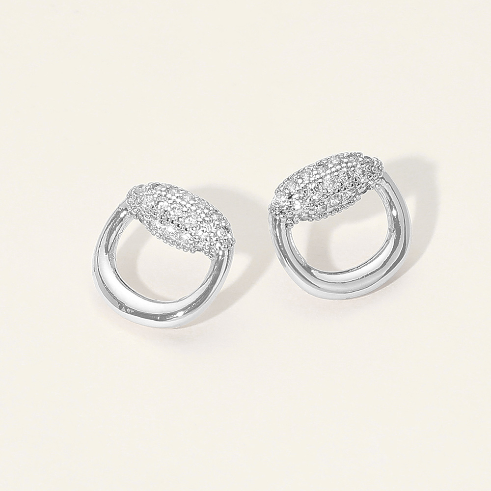 • Modern open circle stud earrings featuring a softly rounded silhouette topped with shimmering CZ pavĂ© detail. Designed to add subtle sparkle and dimension, this refined style transitions easily from everyday wear to evening looks, making it a versatile and giftable accessory choice for fashion-forward collections.