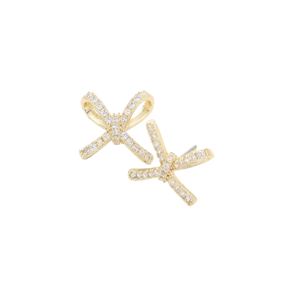 SECRET BOX_Sterling Silver Dipped CZ Stone Paved Bow Stud Earrings