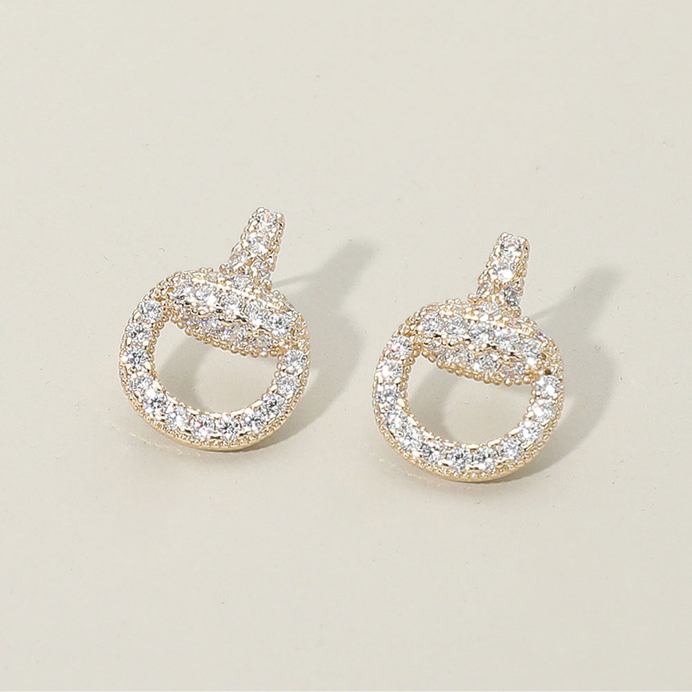 Details • Size : 0.7" X 0.8" • Post Back • These sparkling circle stud earrings offer a refined, modern look with their intricate detailing and luminous finish. Designed to elevate any outfit, they deliver a touch of sophistication and shine, making them a versatile accessory for both daily wear and special occasions. • CZ Cubic Zirconia • Gold Dipped