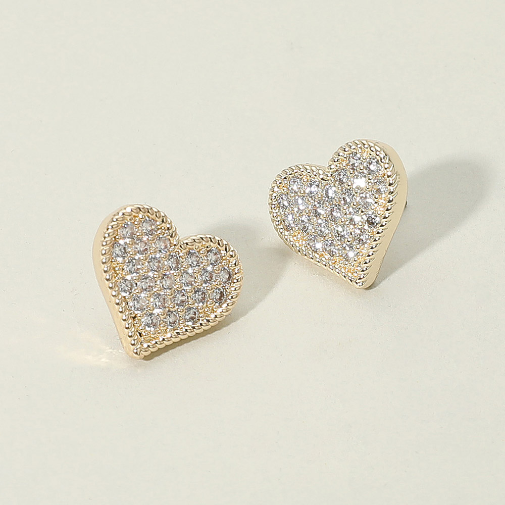 • Add a touch of romance to your look with these crystal heart stud earrings, featuring a sparkling pavĂ© design framed by delicate textured detailing. Perfect for everyday wear or gifting, they bring timeless elegance and feminine charm to any jewelry collection.