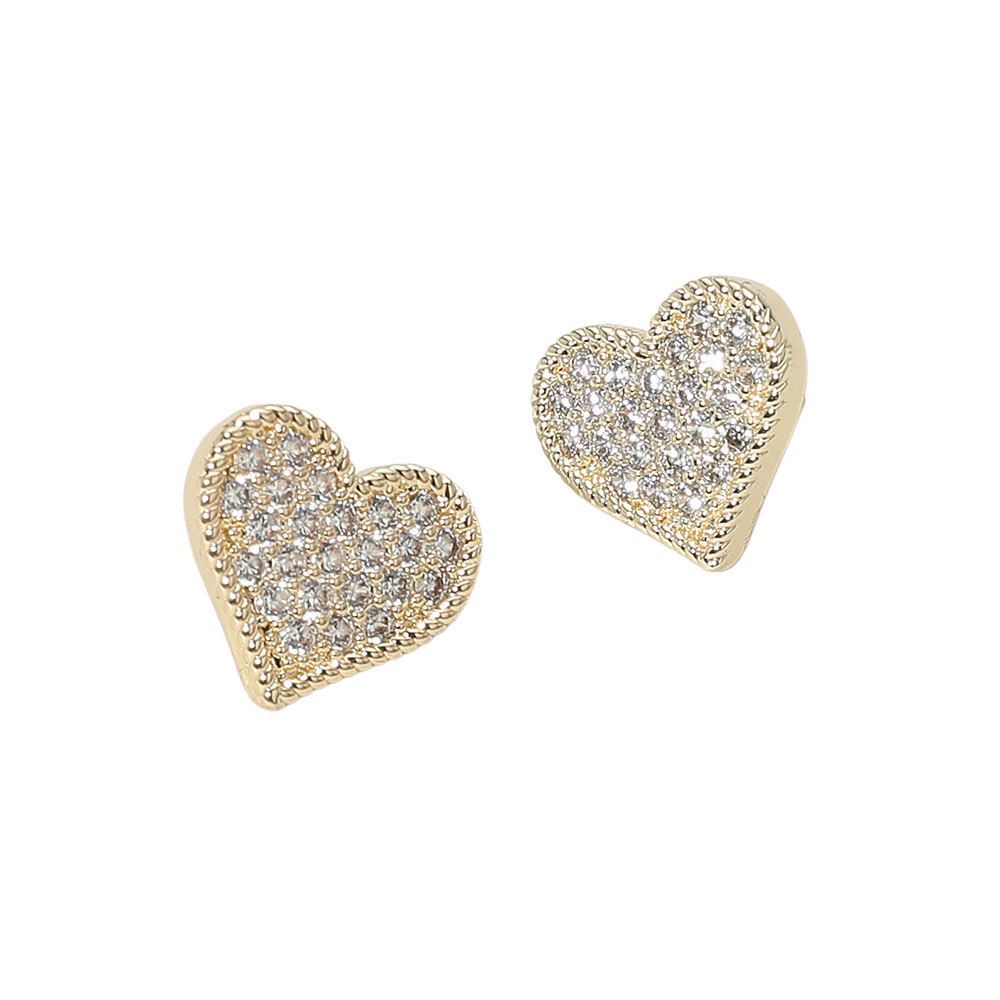 Gold Dipped CZ Stone Paved Heart Stud Earrings