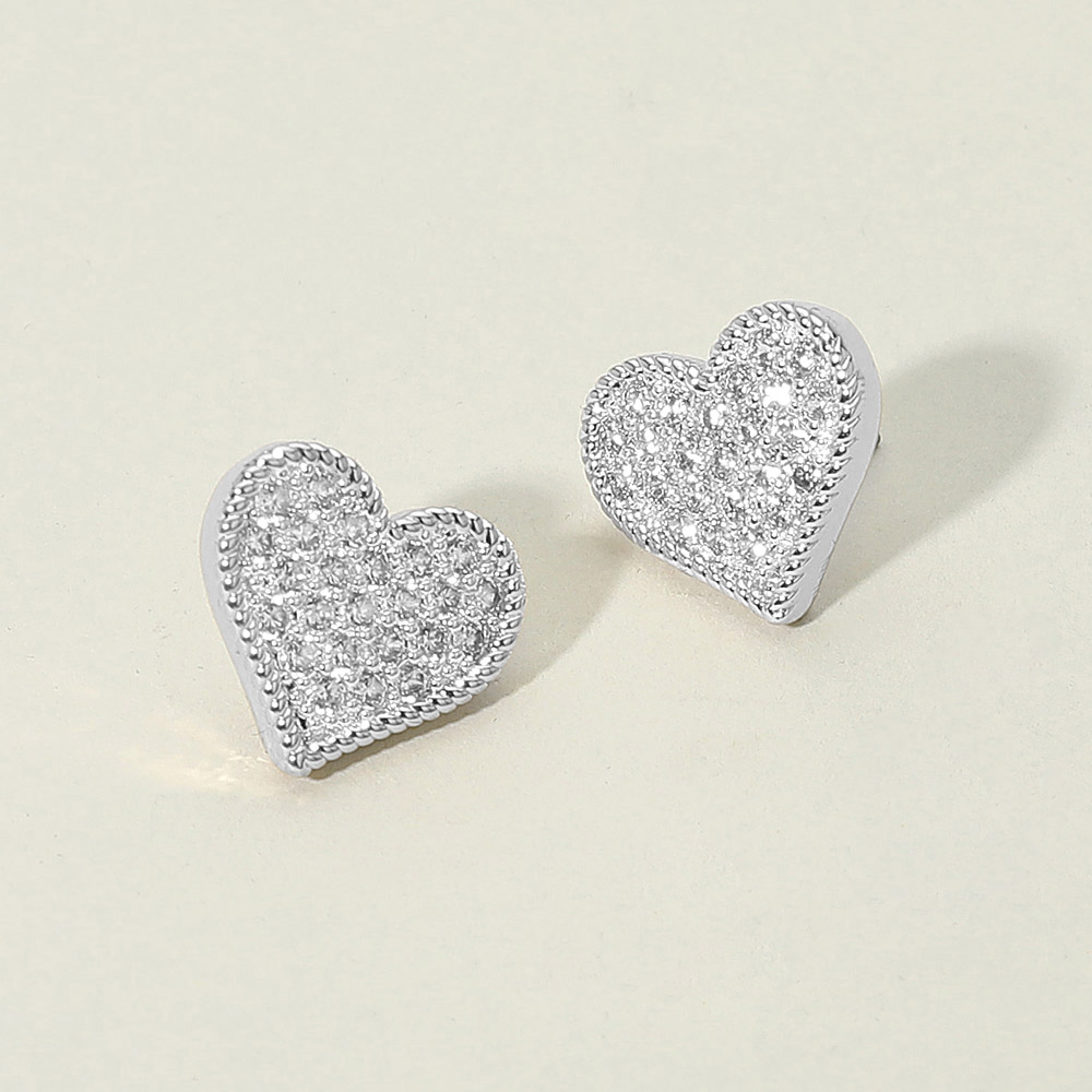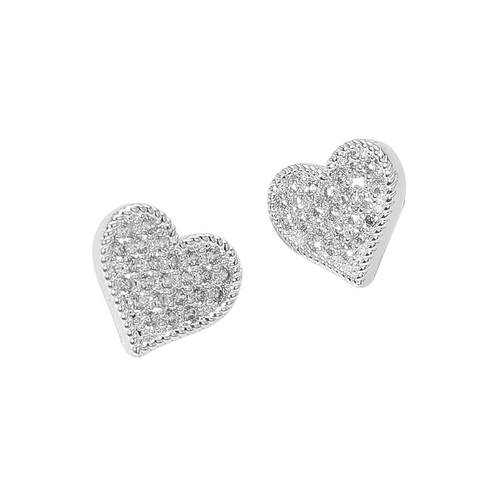 White Gold Dipped CZ Embellished Heart Stud Earrings
