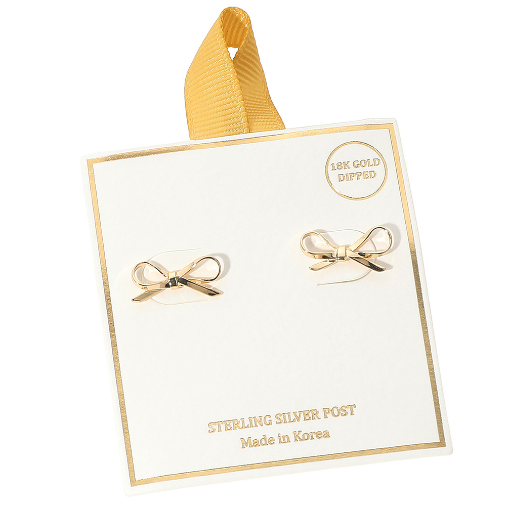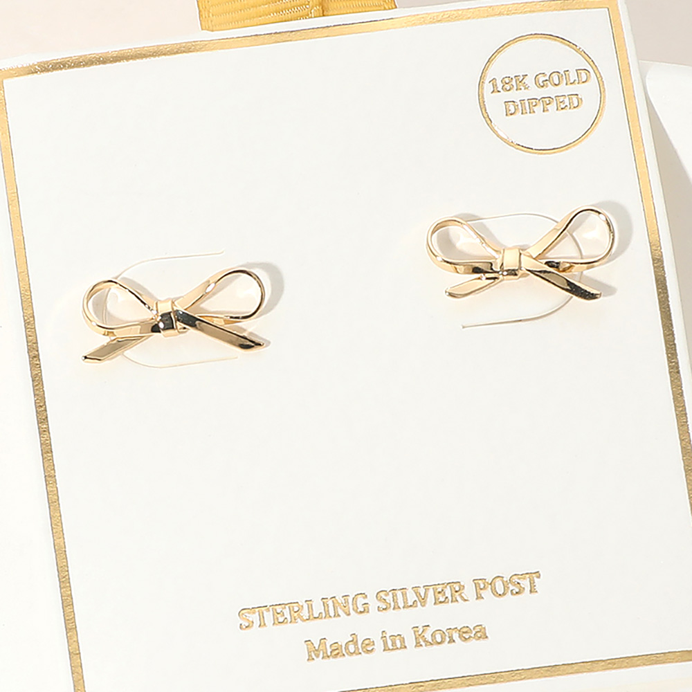Details • Size : 0.7" X 0.3" • Charming bow knot post earrings designed with a delicate looped shape for a sweet, feminine touch. Lightweight and easy to wear with a secure post backing, they add a polished accent to everyday outfits or special occasions. A simple, elegant accessory that enhances any jewelry collection. • Lead and Nickel Compliant • Made In Korea • Gold Dipped • Sterling Silver Post