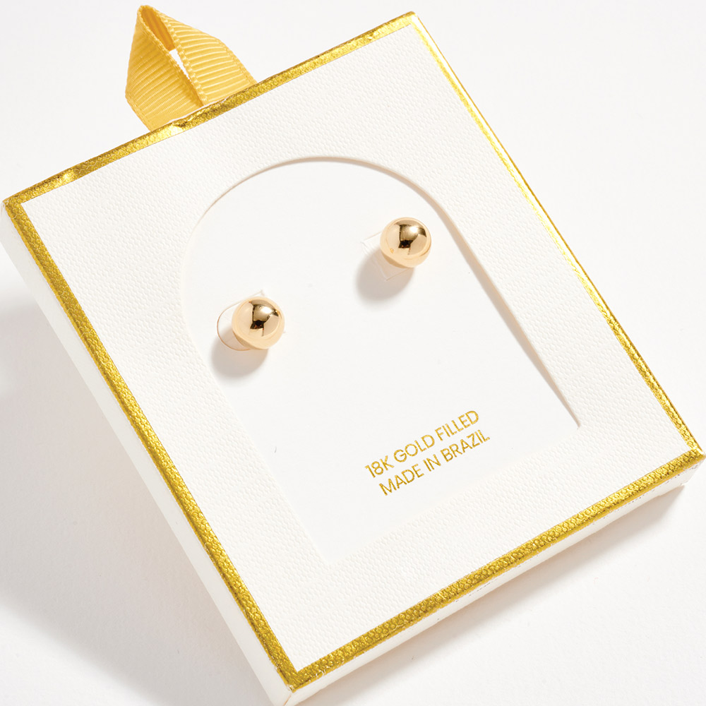 Details • Size : 0.25" X 0.25" • Post Back • Timeless ball stud earrings designed with a smooth, polished finish for effortless everyday wear. Minimal and versatile, these studs pair easily with casual outfits or elevated looks, making them a must-have staple for layering, gifting, or daily styling. • Gold Filled • Hypoallergenic • Lead and Nickel Compliant • Made In Brazil