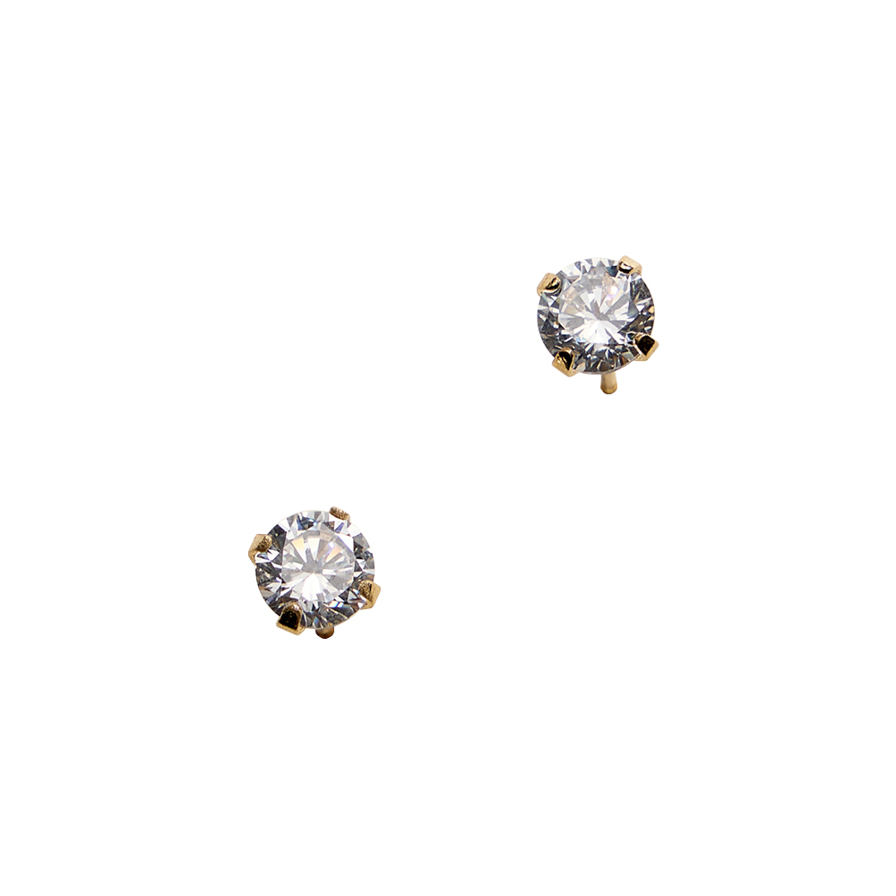 Details • Size : 0.2" X 0.2" • Post Back • Timeless round CZ stud earrings designed for everyday elegance. Featuring a clean, minimal silhouette with brilliant sparkle, these studs are perfect for daily wear, work, or special occasions. A versatile essential that layers easily with other earrings or shines beautifully on its own. • CZ Cubic Zirconia • Gold Filled • Hypoallergenic • Lead and Nickel Compliant • Made In Brazil