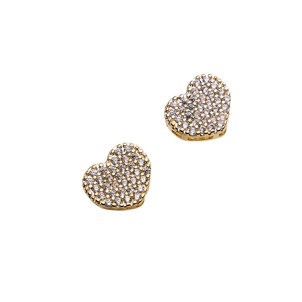 14K Gold Plated CZ Stone Paved Heart Stud Earrings