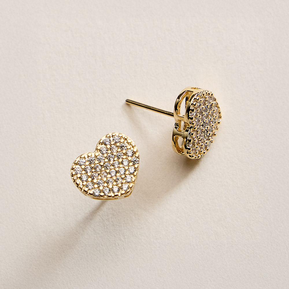 • Charming heart-shaped stud earrings designed with closely set cubic zirconia for eye-catching sparkle. A romantic yet versatile accessory ideal for everyday wear, gifting, or special occasions, adding a polished and graceful touch to both casual and dressy looks.
