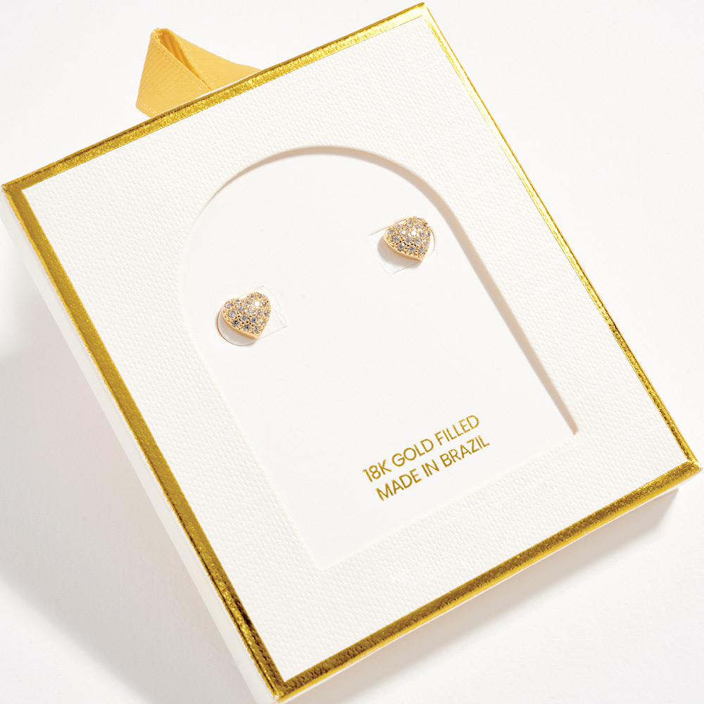 18K Gold Filled CZ Pave Mini Heart Stud Earrings