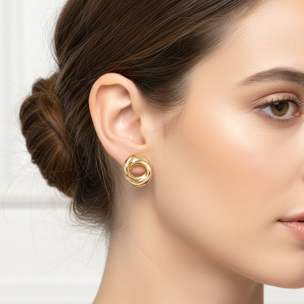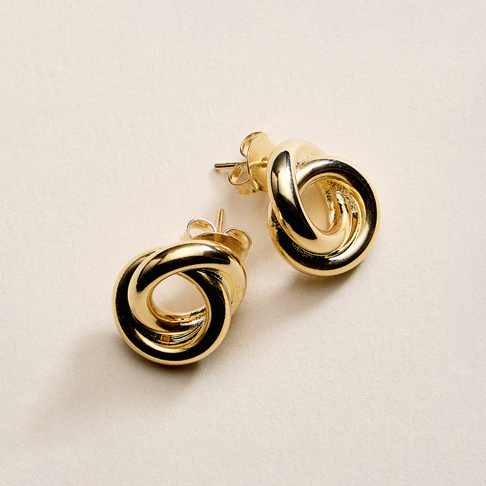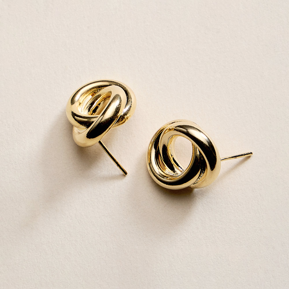 Details • Size : 0.5" X 0.7" • Post Back • Elegant knot-style stud earrings designed with a smooth, intertwined silhouette that symbolizes connection and timeless style. Perfect for everyday wear or special moments, these versatile studs pair effortlessly with casual looks or refined outfits and make a thoughtful, lasting gift. • Gold Filled • Hypoallergenic • Lead and Nickel Compliant • Made In Brazil
