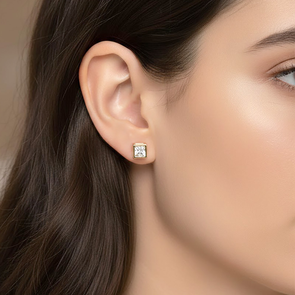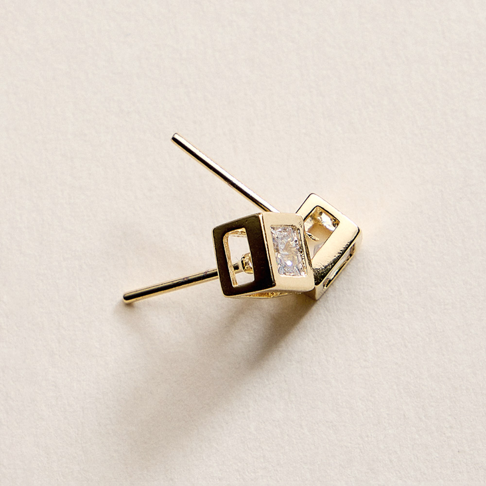 • Modern cube stud earrings featuring a clean, geometric silhouette accented with a brilliant cubic zirconia center. Designed to add subtle sparkle and a refined finish, these studs are ideal for everyday wear, office styling, or special occasions, offering timeless appeal that pairs easily with layered jewelry looks.