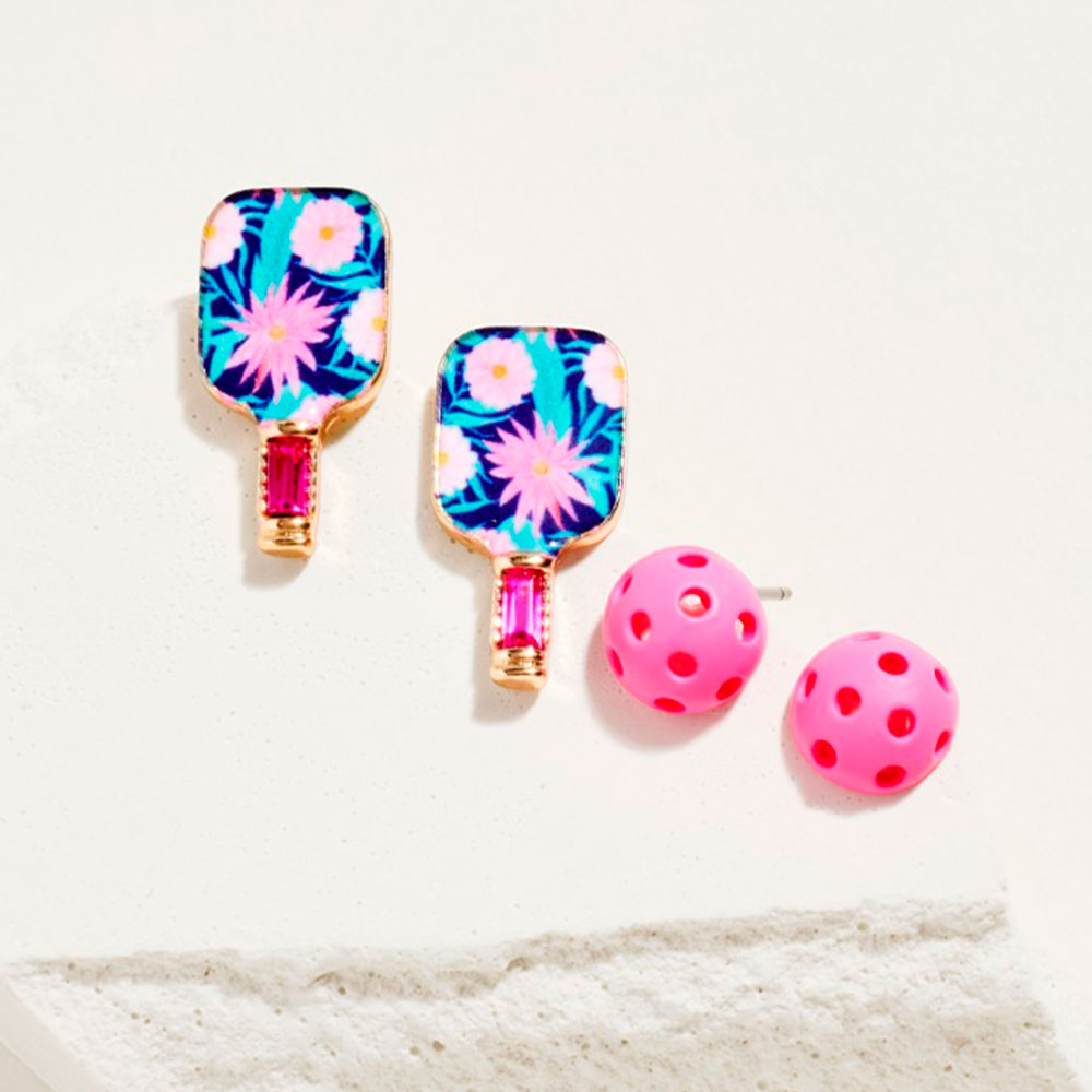 • This pickleball stud earring set features playful paddle and ball designs that add a sporty, cheerful touch to everyday looks. Easy to wear and style, these studs are perfect for casual outfits, gifting, or showing off pickleball pride with a fun, lightweight accessory that fits seamlessly into any jewelry collection.