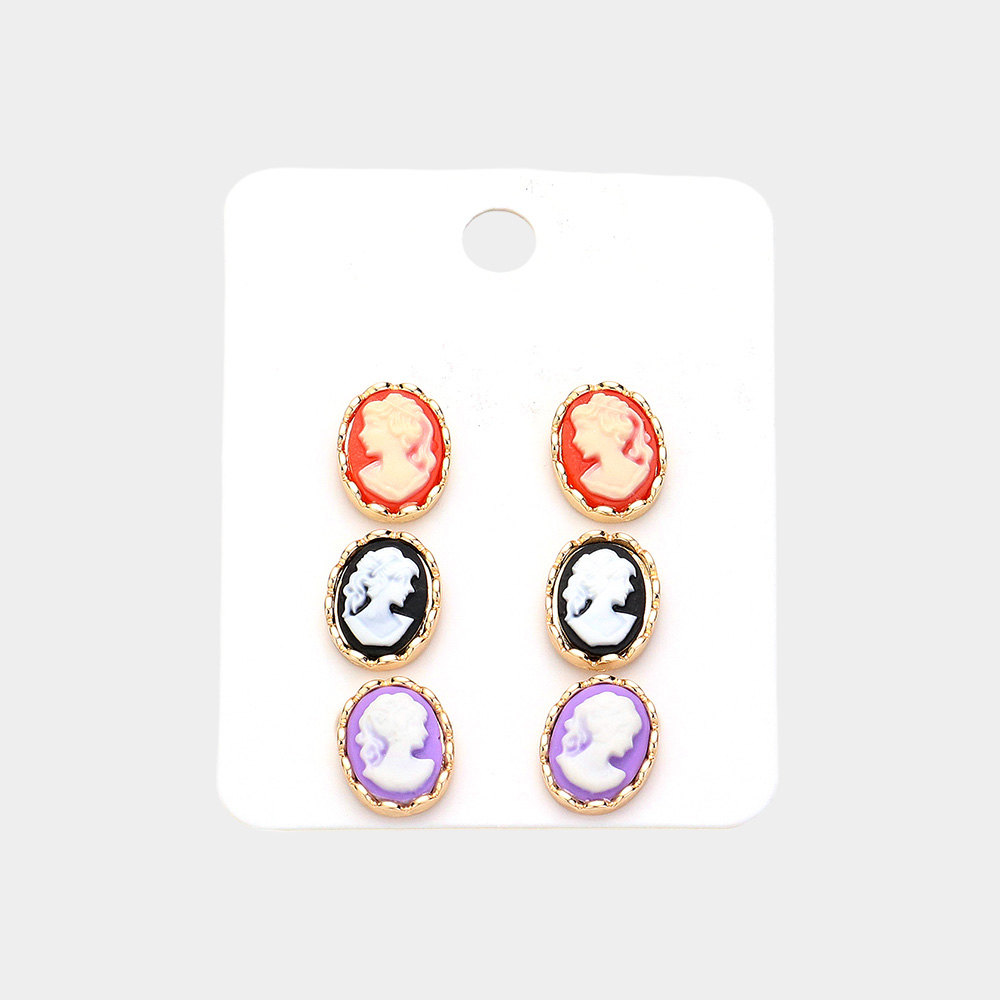 Rhinestone Paved Embellished Cameo Pointed Pin Brooch