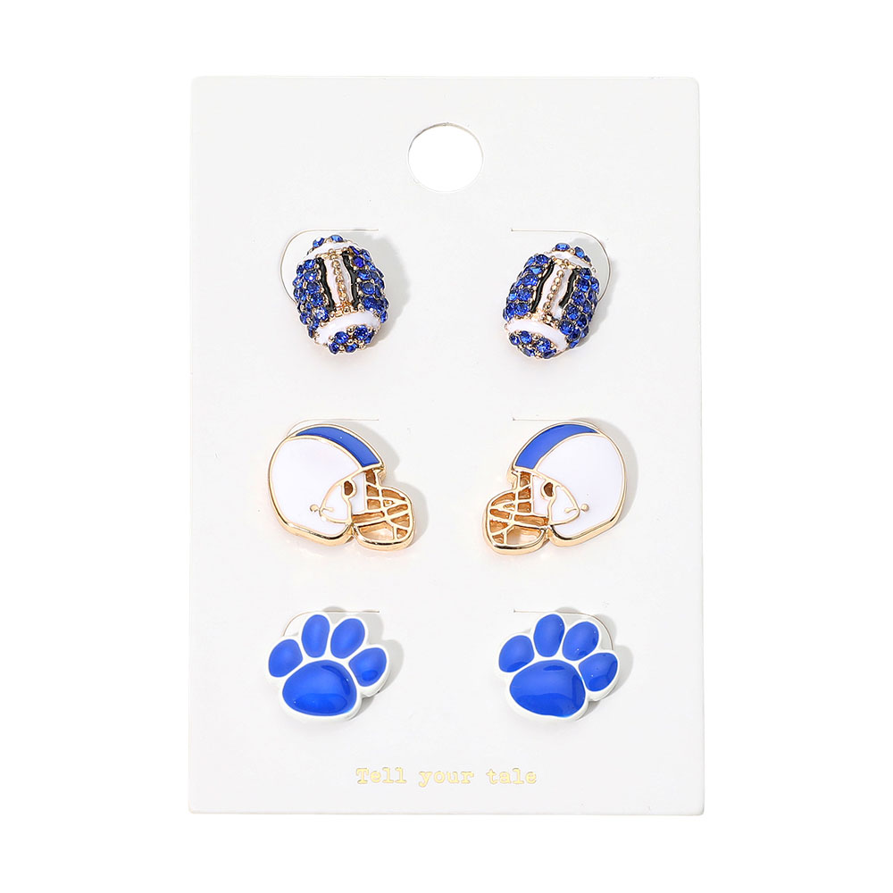 3Pairs - Game Day Spirit Ball Helmet Paw Stud Earring Set