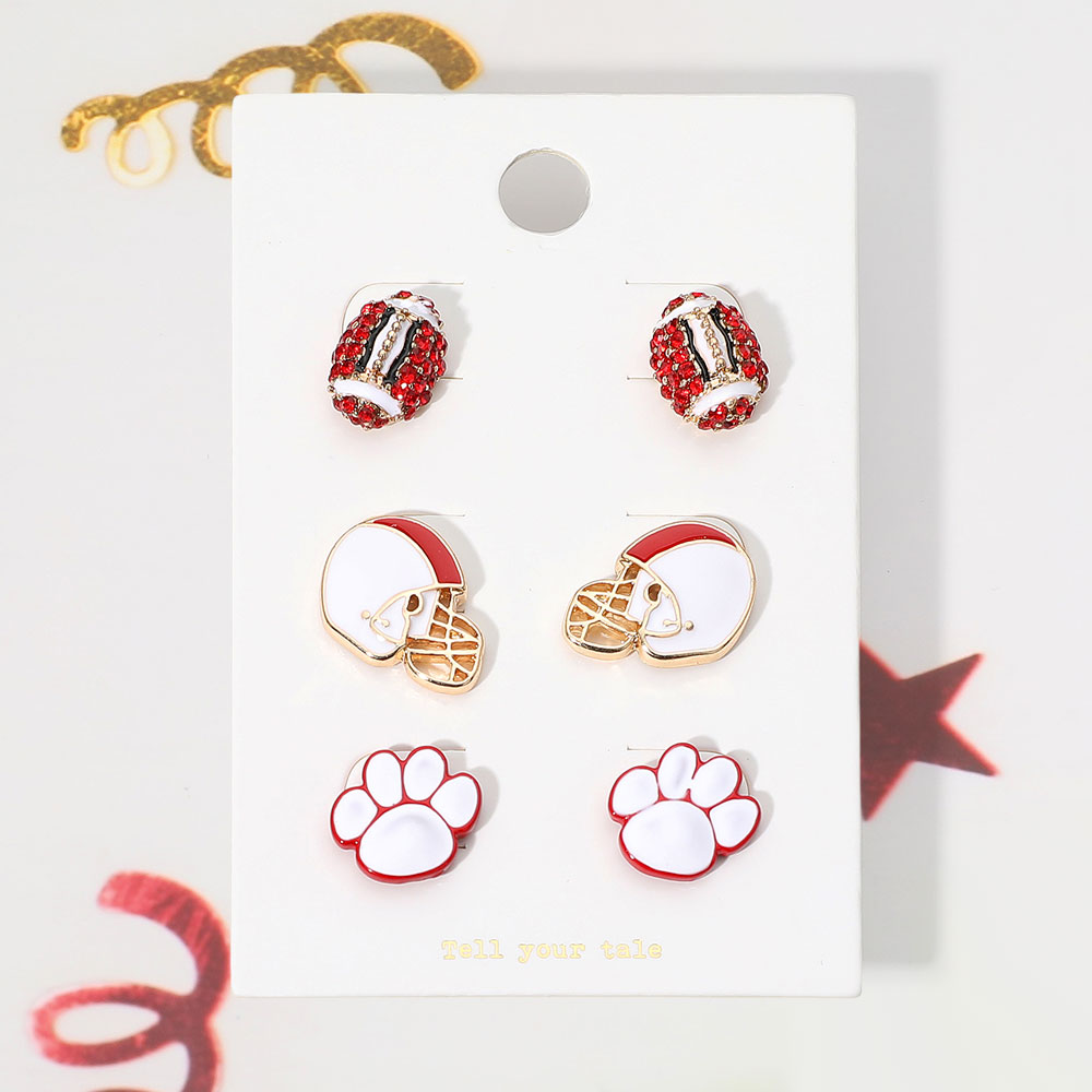 3Pairs - Game Day Spirit Ball Helmet Paw Stud Earring Set 3Pairs - Game Day Spirit Ball Helmet Paw Stud Earring Set 3Pairs - Game Day Spirit Ball Helmet Paw Stud Earring Set