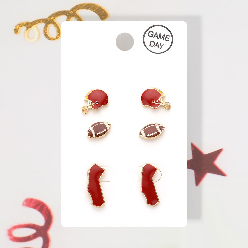 Details • Size : 0.25" L - 0.5" L • Post Back • Celebrate your team spirit with this Game Day stud earring set featuring three playful pairs inspired by sporty designs. Perfect for fans and casual wearers alike, these lightweight earrings add a fun and energetic flair to any outfit while showcasing your love for the game. • Lead and Nickel Compliant