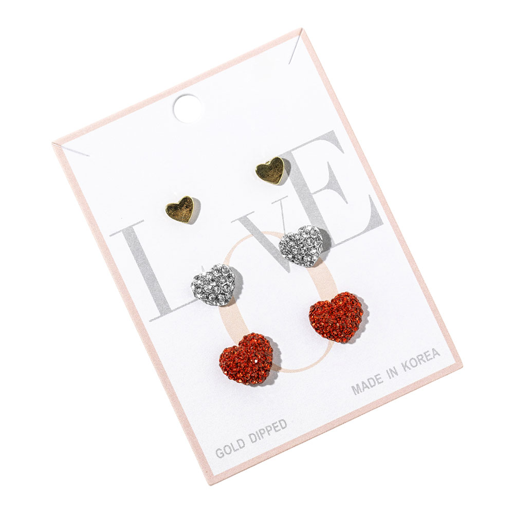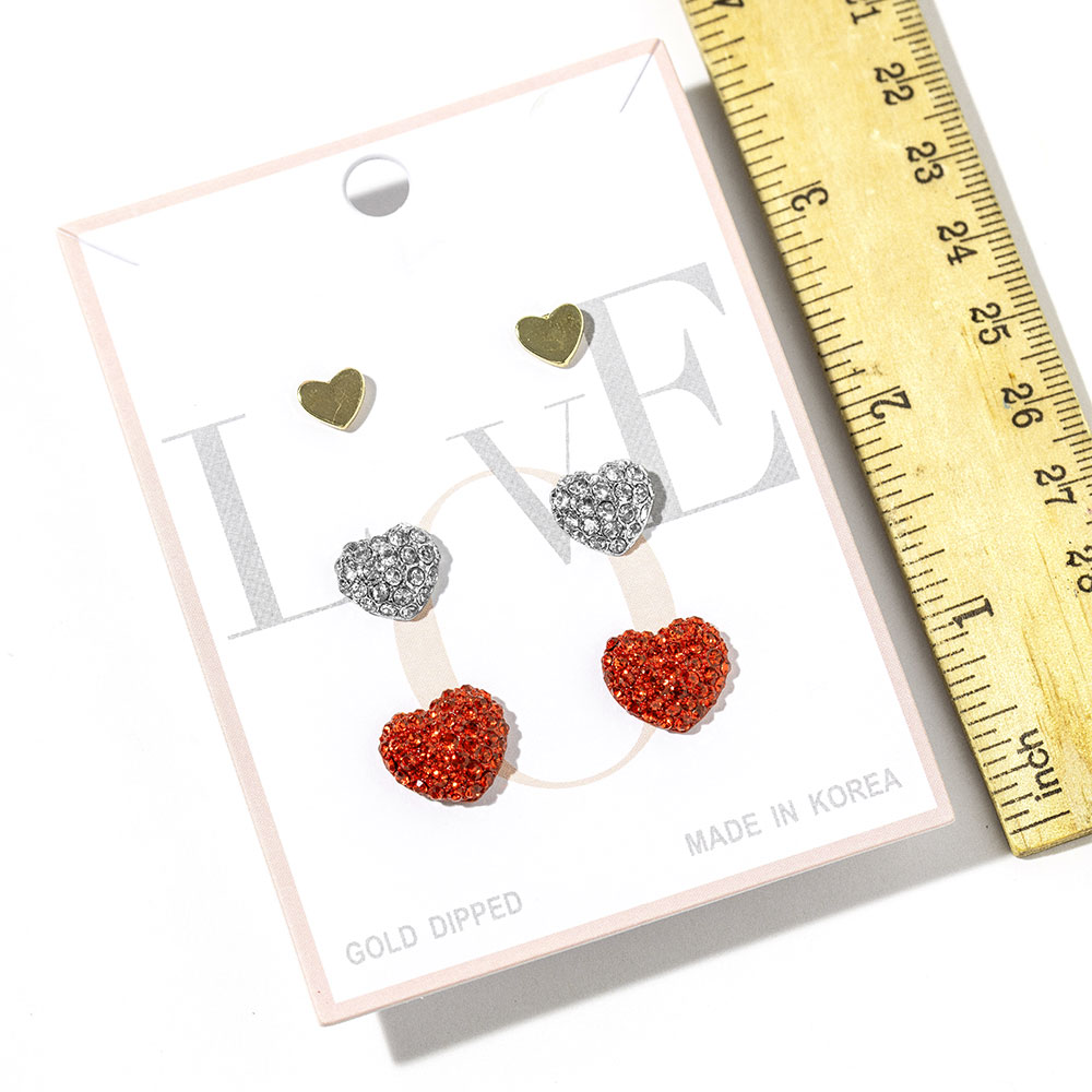 3Pairs - Gold Dipped Metal Rhinestone Studded Heart Stud Earring Set 3Pairs - Gold Dipped Metal Rhinestone Studded Heart Stud Earring Set 3Pairs - Gold Dipped Metal Rhinestone Studded Heart Stud Earring Set 3Pairs - Gold Dipped Metal Rhinestone Studded Heart Stud Earring Set