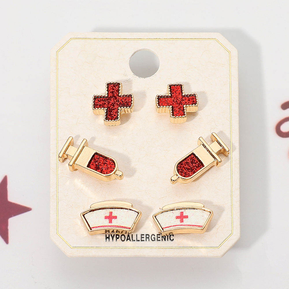 Details • Size : 0.3" - 0.7" L • Post Back • Cute multi-pair assortment featuring classic nurse symbols for playful daily styling. Perfect for workdays, gifting, or school spirit looks, offering mix-and-match versatility with charming themed details. • Lead and Nickel Compliant