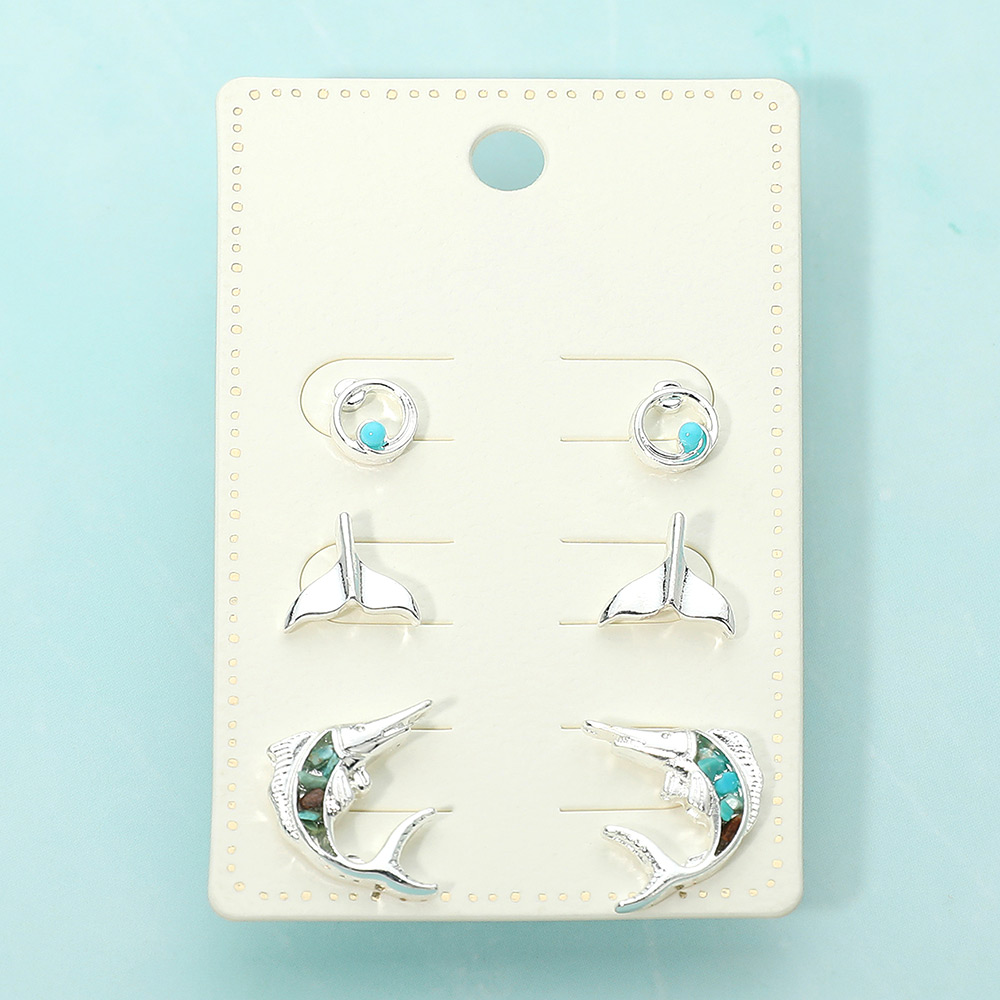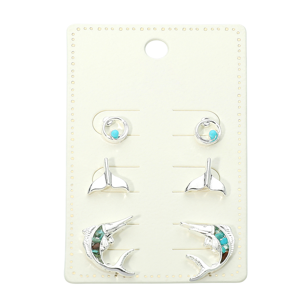 3Pairs - Whale Tale Fish Stud Earring Set 3Pairs - Whale Tale Fish Stud Earring Set