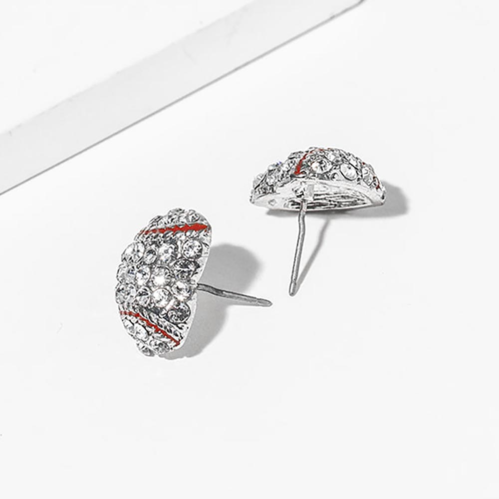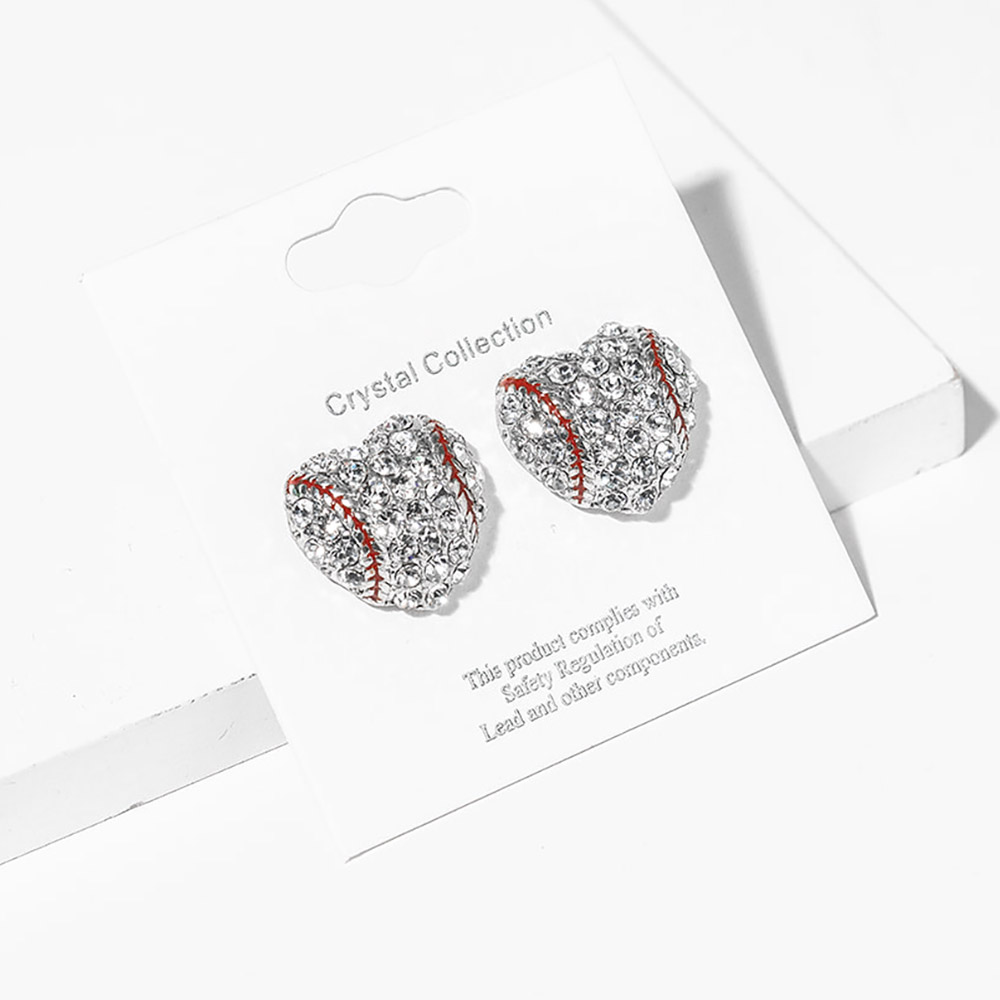 • Playful heart-shaped stud earrings inspired by classic baseball details, featuring a sparkling crystal-covered surface for eye-catching shine. A fun statement accessory perfect for sports fans, game day outfits, themed collections, and novelty jewelry displays with a bold, fashionable twist.