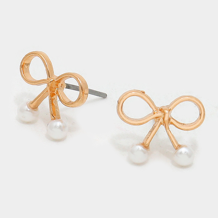 Bow stud earrings with pearls