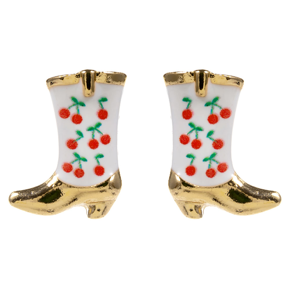 Details • Size : 0.6" X 0.7" • Titanium Post Back • Charming boot-shaped stud earrings featuring a playful fruit motif and glossy detailing for a standout yet lightweight accent. Designed for comfortable daily wear, these whimsical studs add personality to casual outfits, themed looks, or giftable accessory collections. • Hypoallergenic • Lead and Nickel Compliant