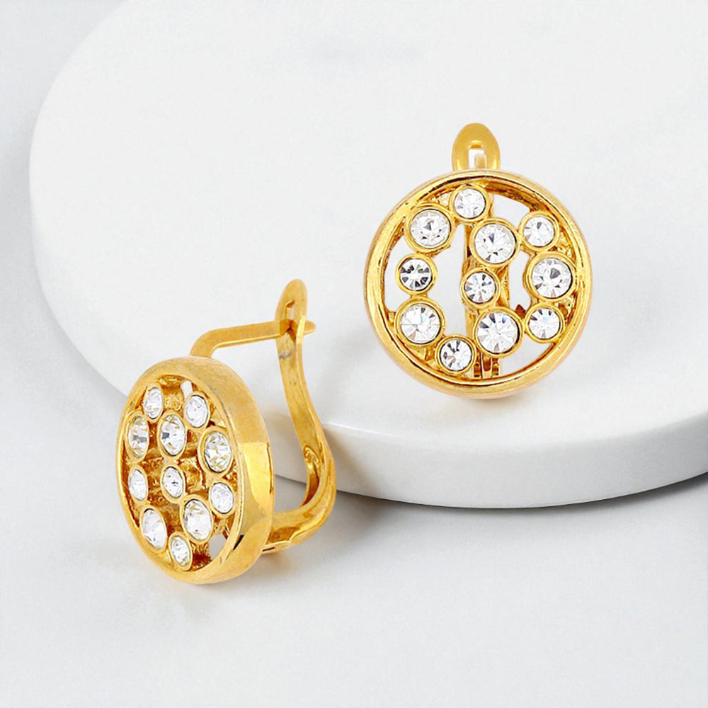 Crystal Accented Circle Outline Metal Earrings
