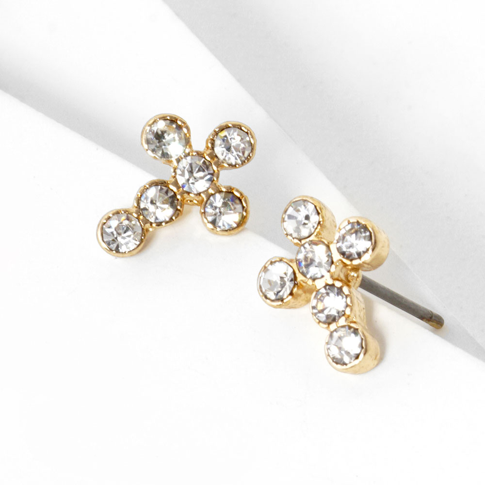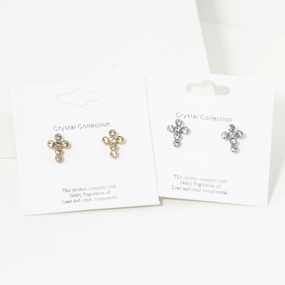 Details • Size : 0.3" X 0.4" • Post Back • Classic crystal cross stud earrings designed for timeless appeal and everyday versatility. This elegant stud style adds subtle sparkle and meaningful charm, making it ideal for casual wear, special occasions, gifting, or faith-inspired collections. A refined accessory that pairs effortlessly with layered looks or minimalist styling. • Lead and Nickel Compliant