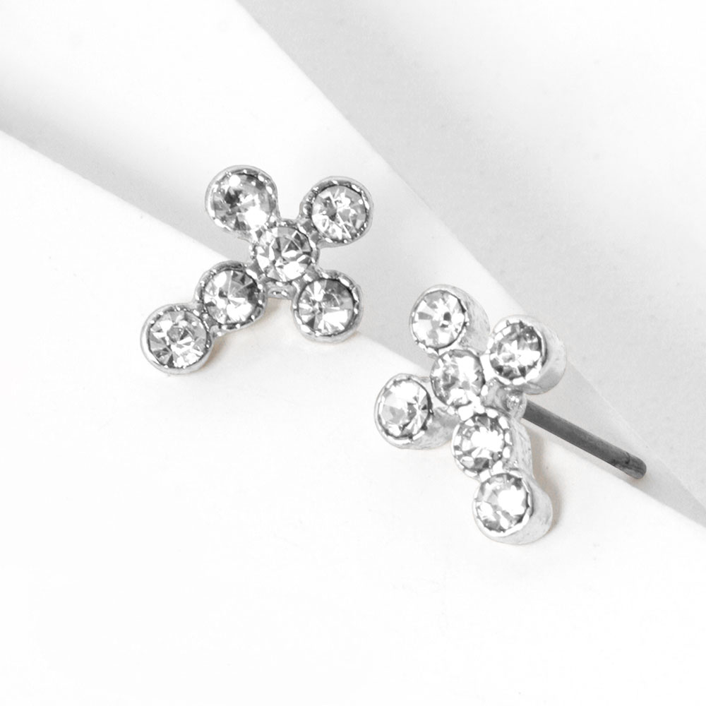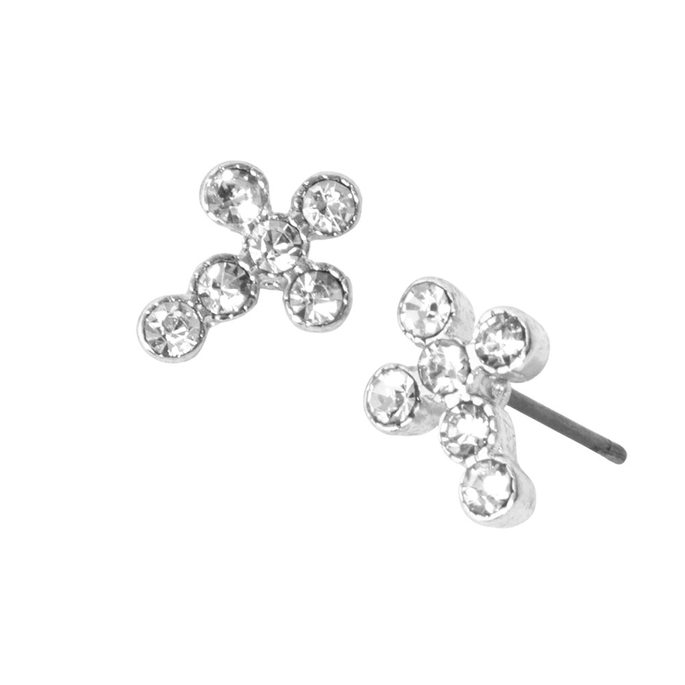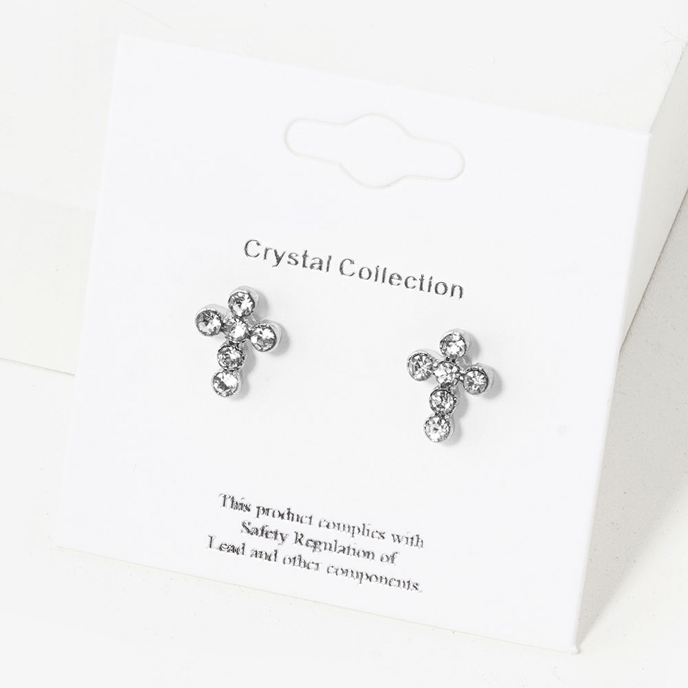 Details • Size : 0.3" X 0.4" • Post Back • Classic crystal cross stud earrings designed for timeless appeal and everyday versatility. This elegant stud style adds subtle sparkle and meaningful charm, making it ideal for casual wear, special occasions, gifting, or faith-inspired collections. A refined accessory that pairs effortlessly with layered looks or minimalist styling. • Lead and Nickel Compliant