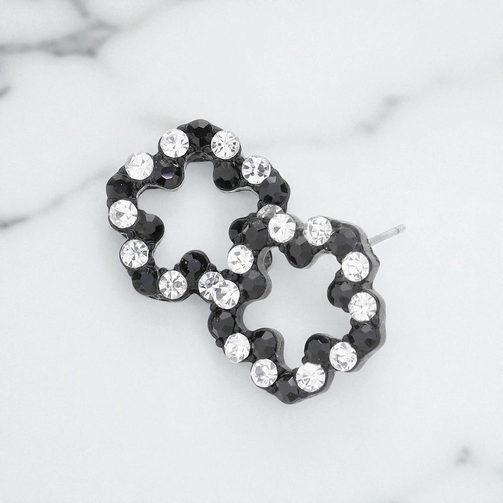 Oval Glass Stone Accented Rhinestone Paved Flower Pin Brooch