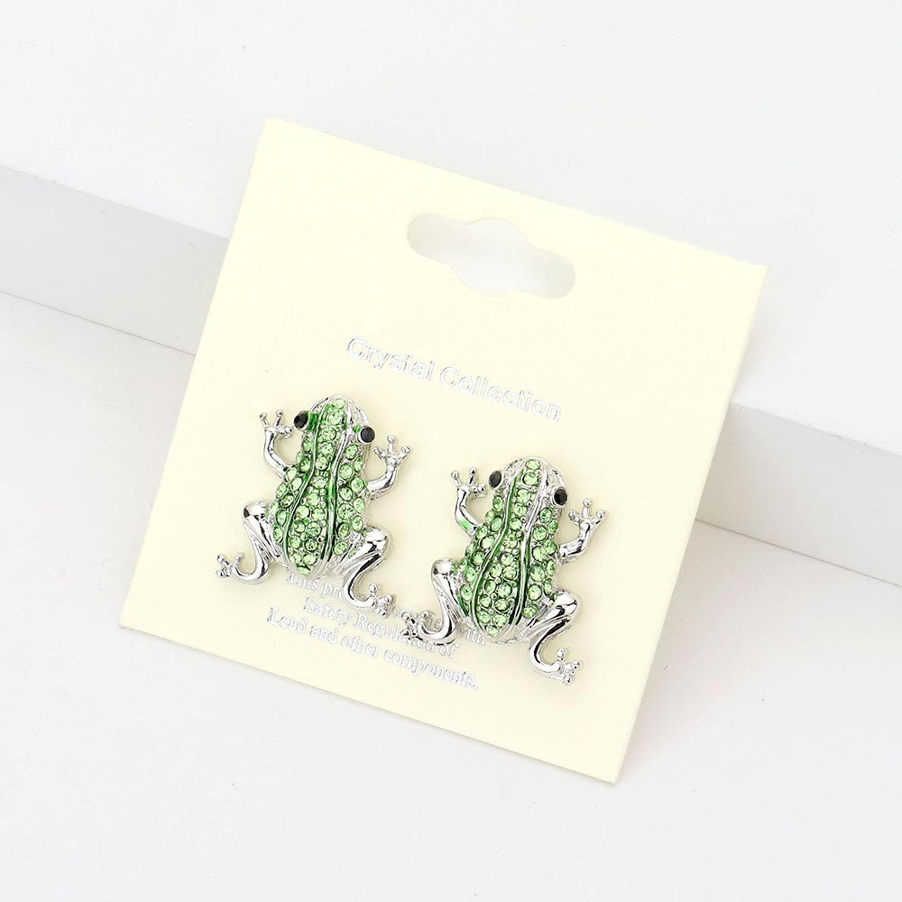 • These frog crystal stud earrings add a touch of whimsy and sparkle to your look. Featuring a charming frog design embellished with dazzling stones, they bring playful elegance and personality, making them the perfect accessory for adding character to any outfit.