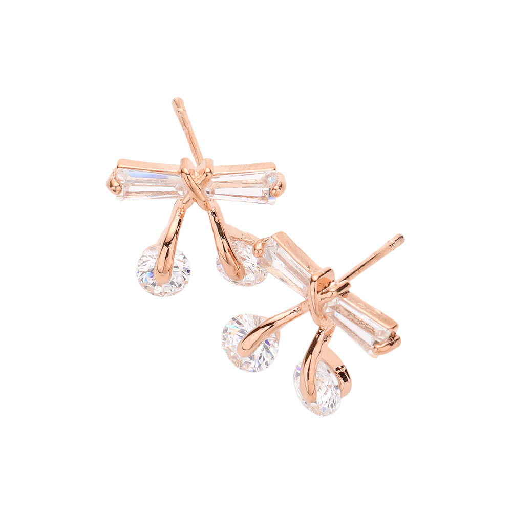 Details • Size : 0.5" X 0.4" • Post Back • Delicate bow-inspired stud earrings accented with sparkling drop details for subtle movement and refined shine. Designed to elevate everyday looks or complement special-occasion outfits, these lightweight studs offer a graceful statement that transitions effortlessly from day wear to evening elegance. • Lead and Nickel Compliant • CZ Cubic Zirconia