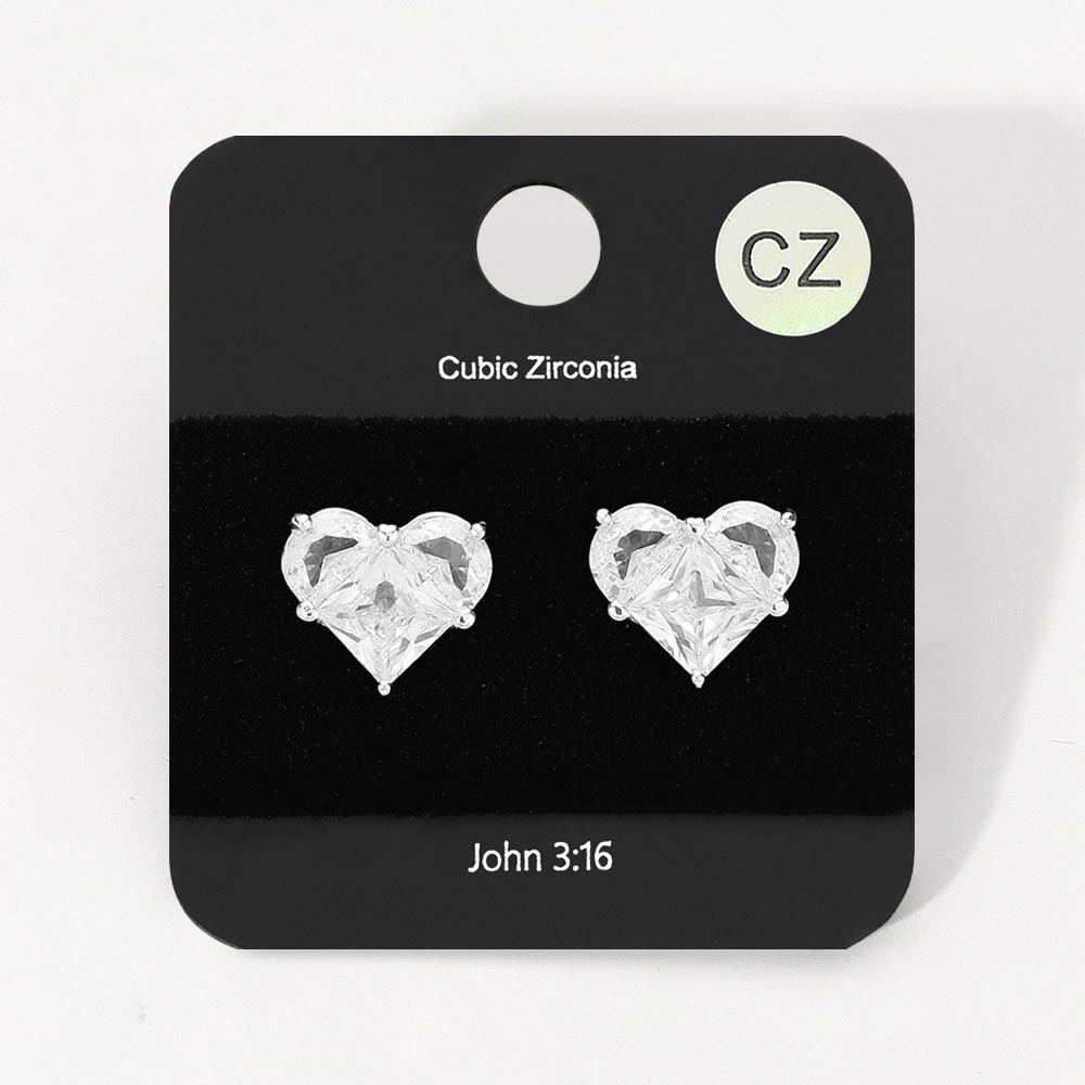 Details • Size : 0.4" X 0.4" • Post Back • These heart-shaped cubic zirconia stud earrings bring timeless charm and radiant sparkle to any outfit. Their elegant cut and refined setting capture light beautifully, making them a perfect choice for both romantic occasions and daily wear with a touch of sophistication and grace. • Lead and Nickel Compliant