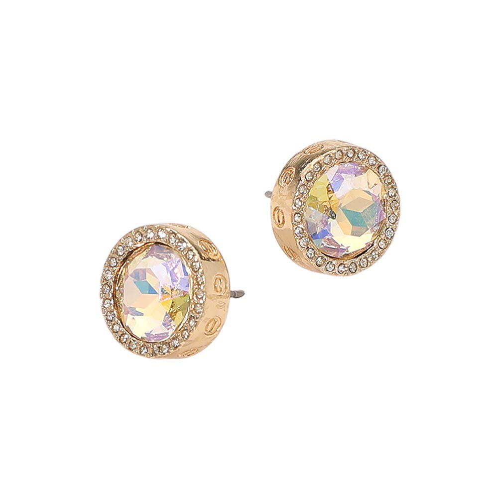 Details • Size : 0.6" X 0.5" • Post Back • Refined stud earrings featuring a faceted center design framed by a detailed halo for added dimension and shine. The classic round silhouette offers a balanced look that transitions easily from daytime wear to evening styling, making these studs ideal for boutiques, gifting collections, and everyday fashion displays. • Lead and Nickel Compliant