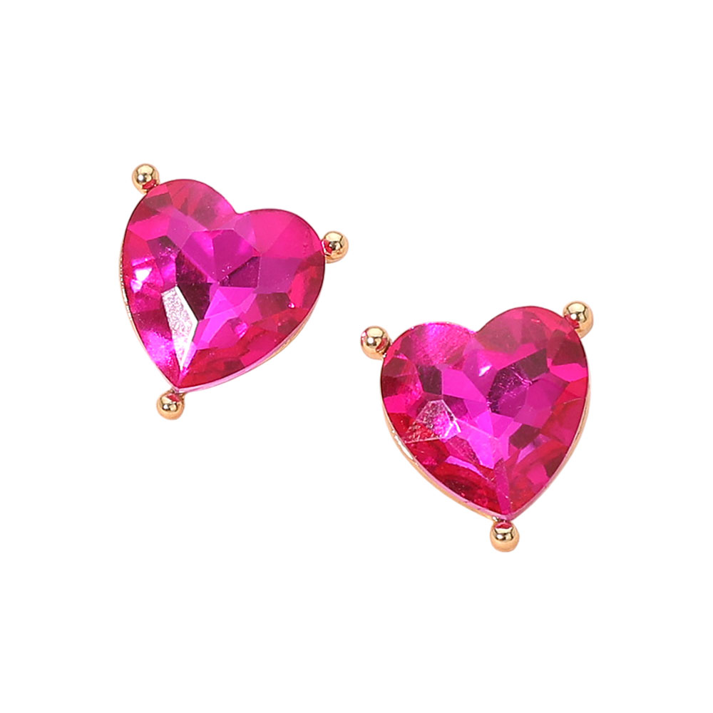 Faceted Heart Stone Stud Earrings