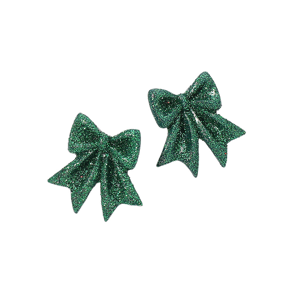 • Charming bow shaped earrings with a sparkling glitter finish for a playful yet elegant touch. Perfect for casual outfits or festive occasions, these statement studs add a whimsical sparkle to any look while keeping your style fresh, fun, and effortlessly chic.